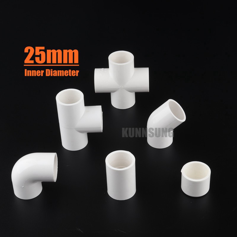 6pcs PVC Fitting 25mm 3 Colors Pipe Joints Tee Elbow Cross Water Supply Aquarium Connectors