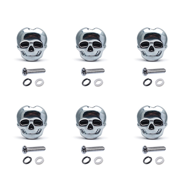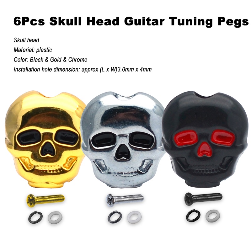 6pcs Plastic Skull Head Shape Guitar Tuning Peg Tuner Machine Head Replacement Button Knob Handle Black/Gold/Chrome