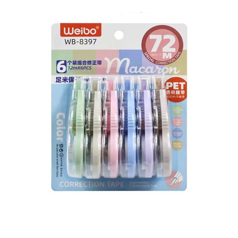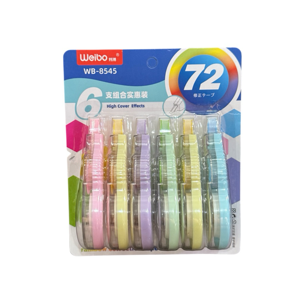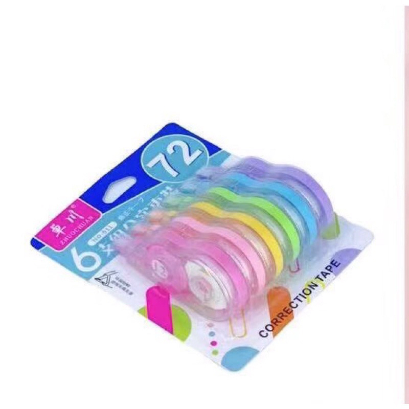 6pcs Rainbow Correction Tape Set (72m) Multi-Color Correction Rolls for School, Office & Crafts