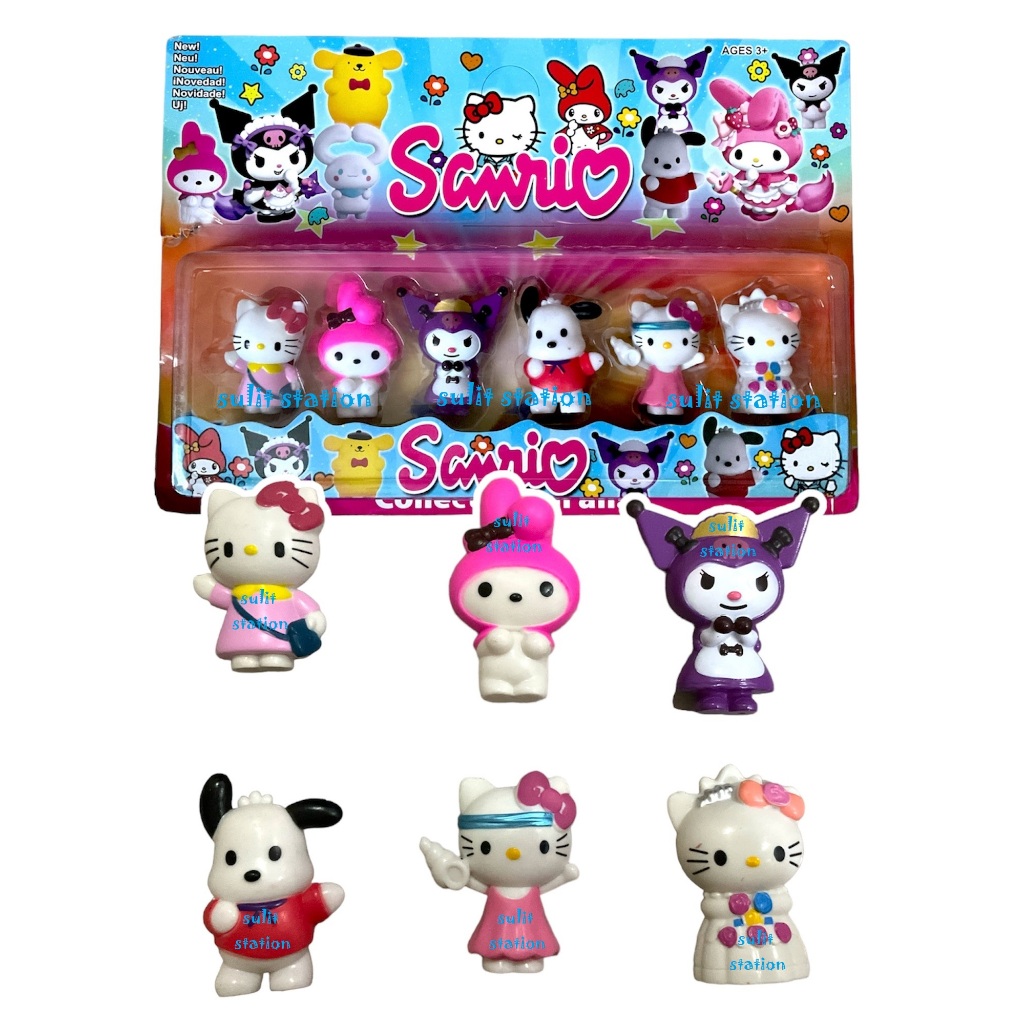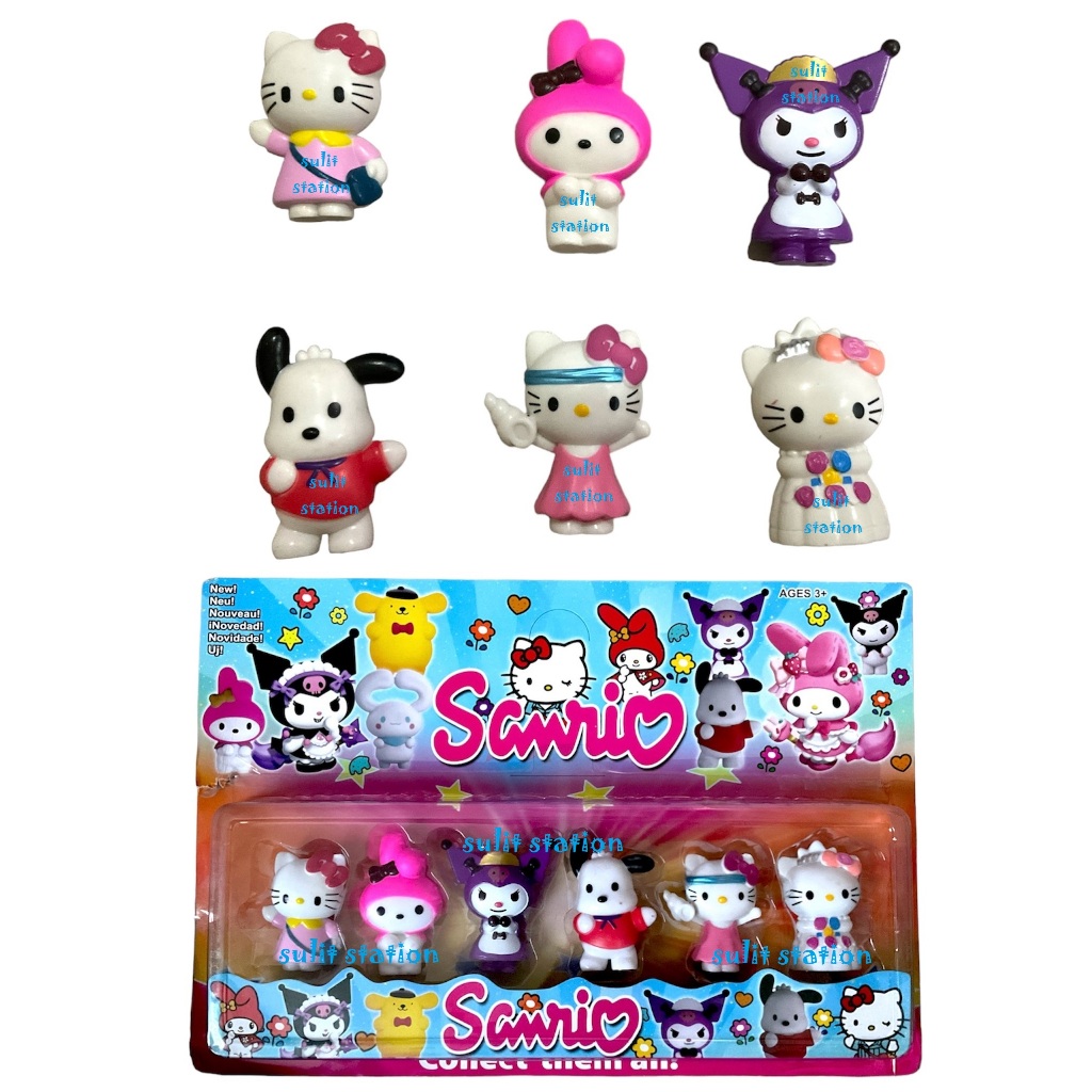 6pcs SANRIO HELLO MIMMIE KITTY MY MELODY KUROMI CHARACTER TOY FIGURES CAKE TOPPER DECORATIONS
