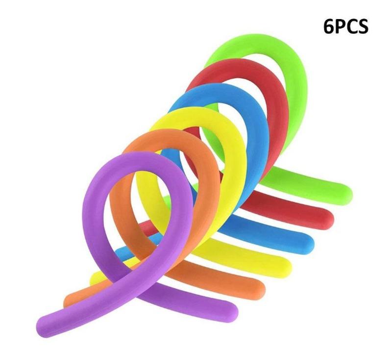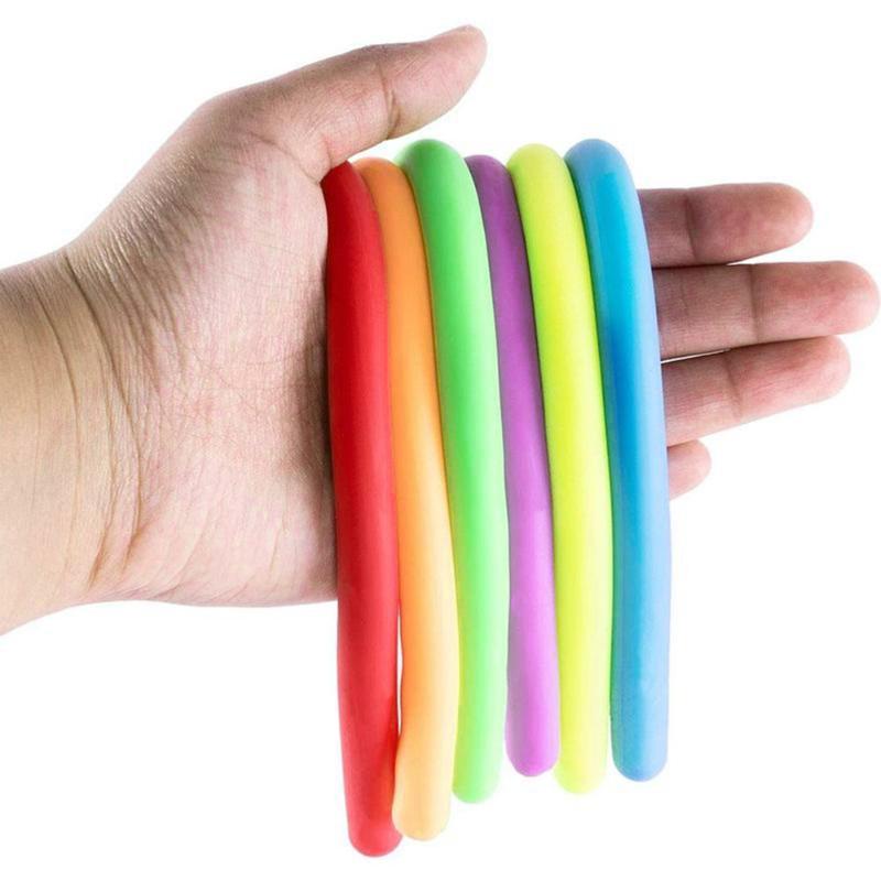 6pcs Soft Rubber Noodle Elastic Rope Toys Stretch String Decompression Toy Stretchy String Fidget Relief Stress Toys