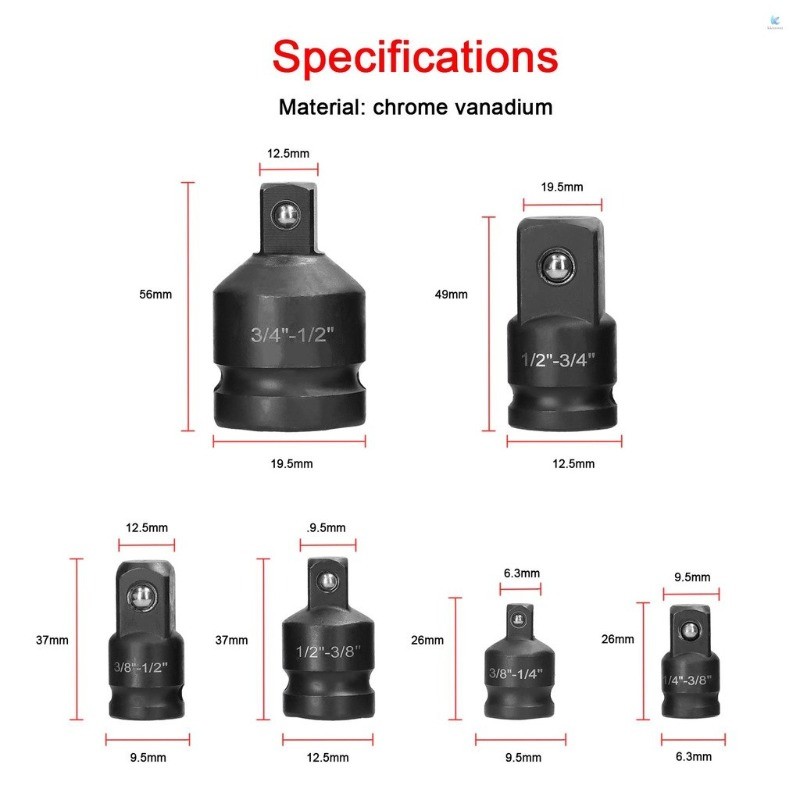6pcs Wrench Adapter Hand Tools Set Drive Socket Adapter Converter Socket Converter Adapter Reducer Kit 1/2 To 3/8, 3/8 To 1/4, 3/4 To 1/2 Car Bicycle Garage Maintenance Tool