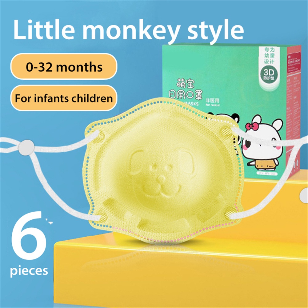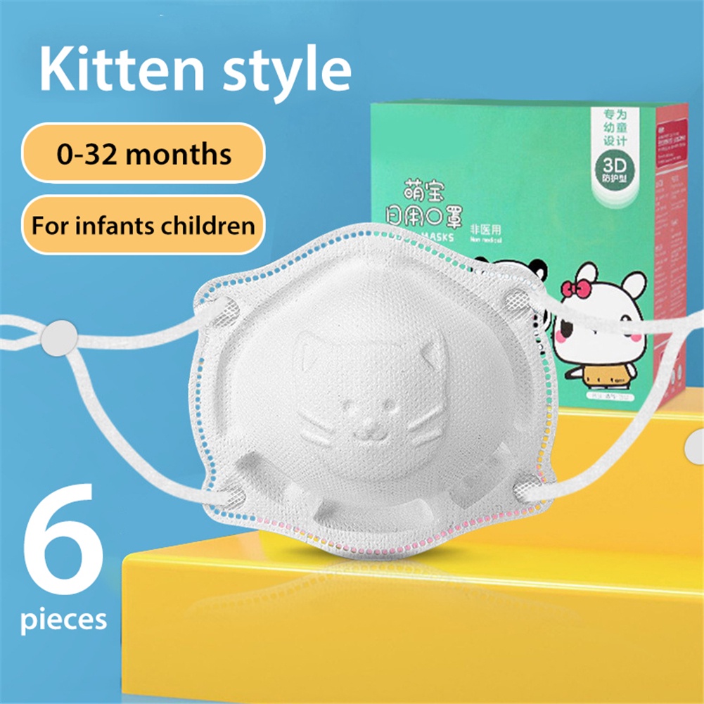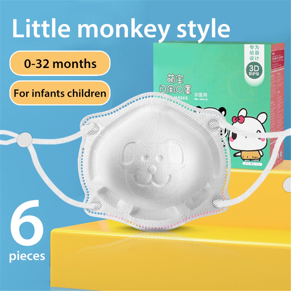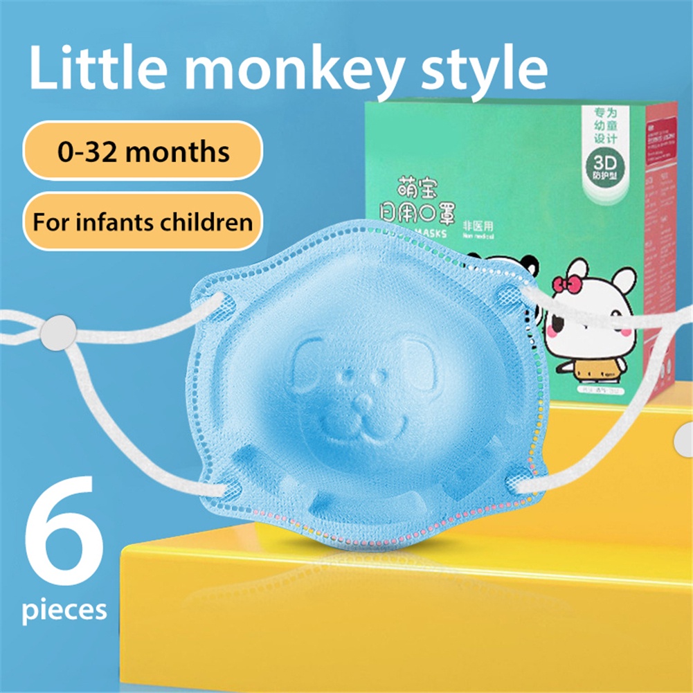 6pcs/box Baby Mask 0-18 months infant and toddler 4ply mask Newborn Baby Safety Facemask Anti-Licking Children 3d Cartoon Disposable