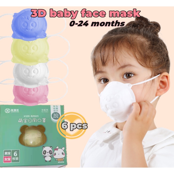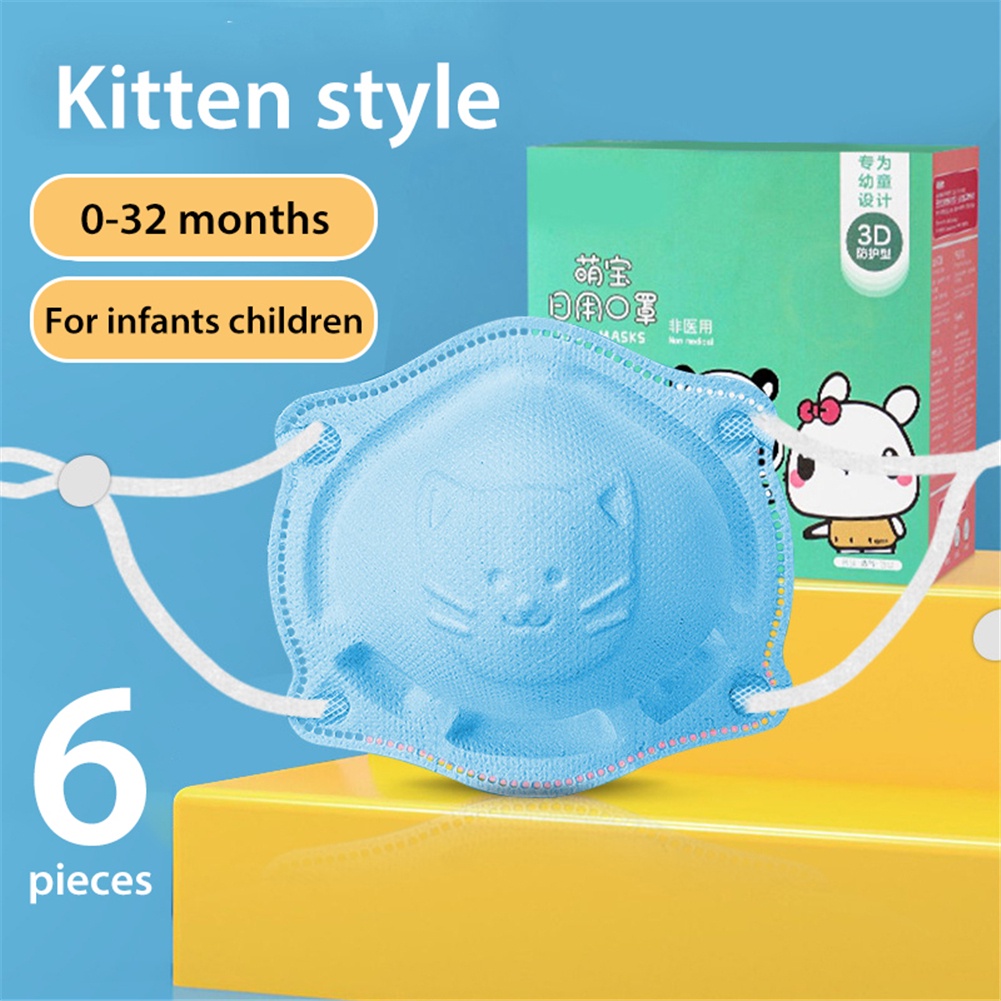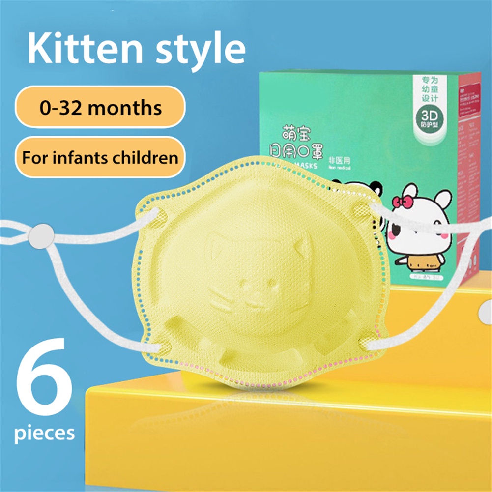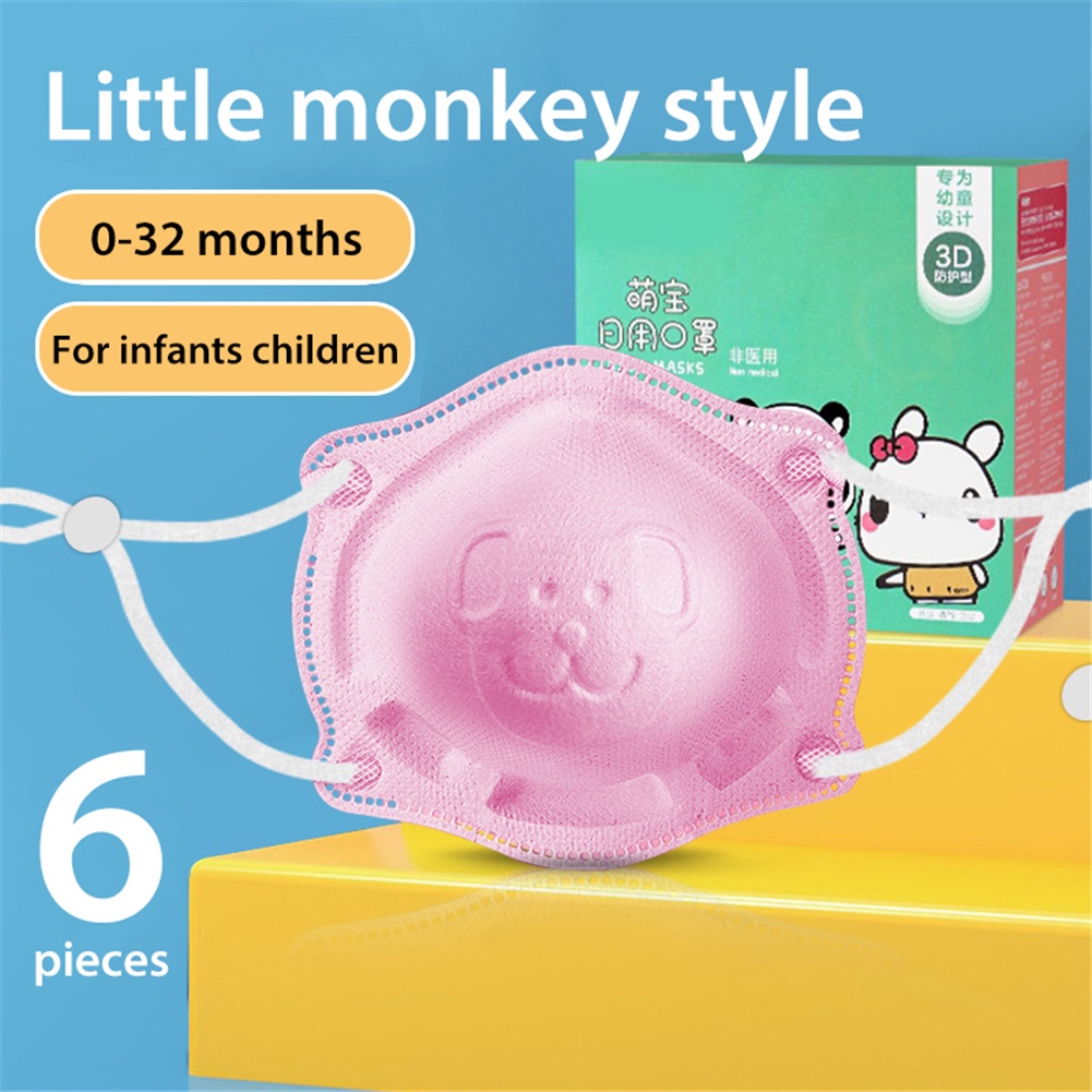 6pcs/box Baby Mask 0-18 months infant and toddler 4ply mask Newborn Baby Safety Facemask Anti-Licking Children 3d Cartoon Disposable