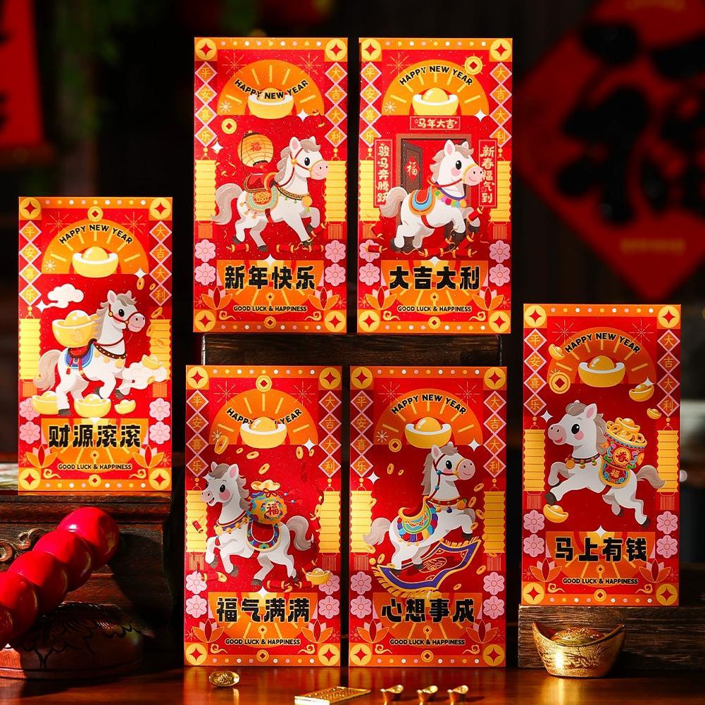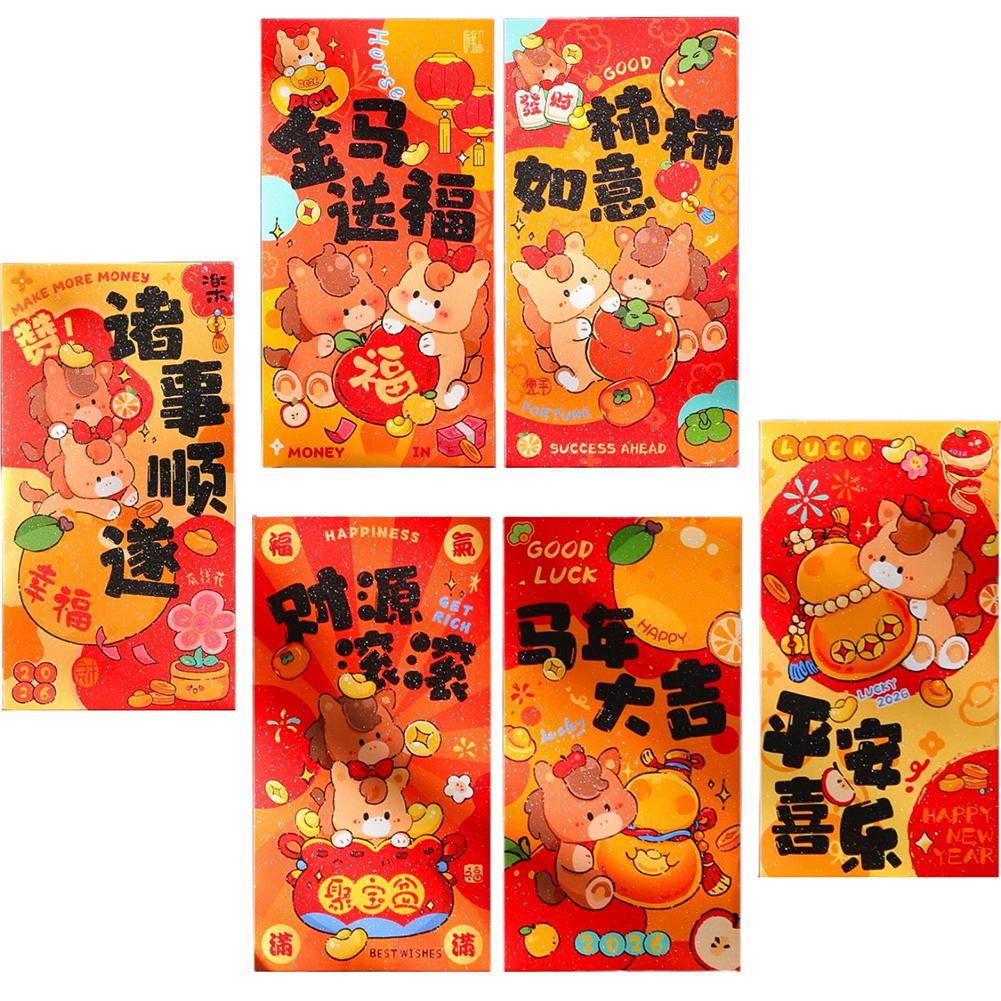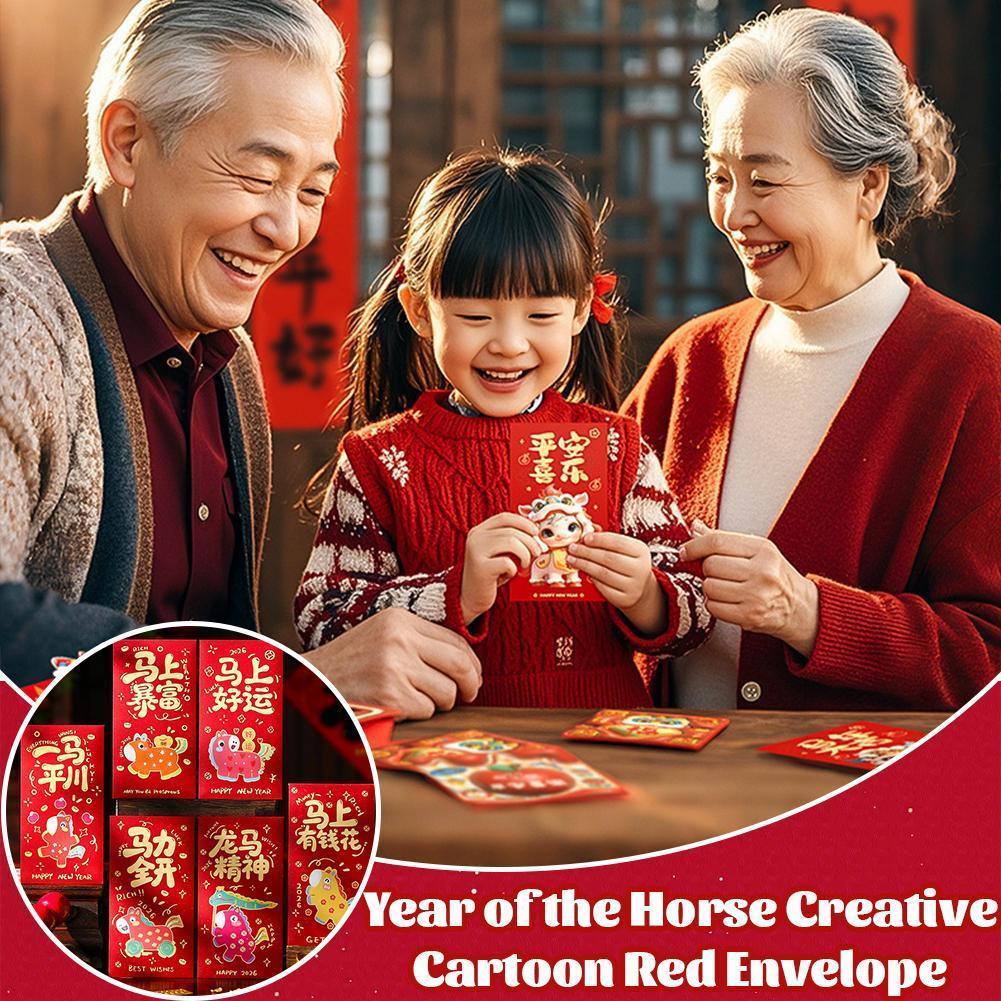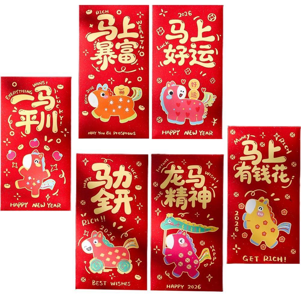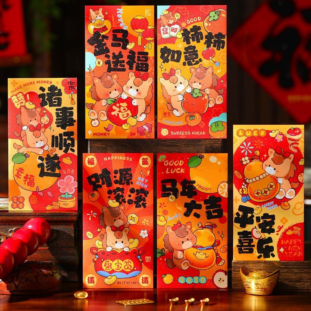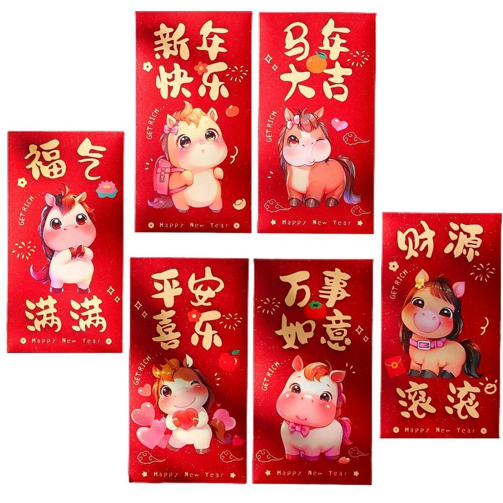 6pcs/pack 2026 Horse Year Red Packet Cute Cartoon Red Kids Year Envelopes Horse New Lucky Bag Q2B1