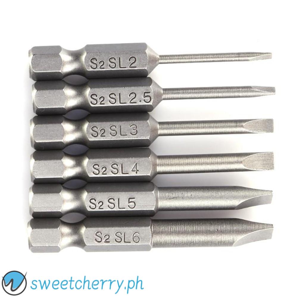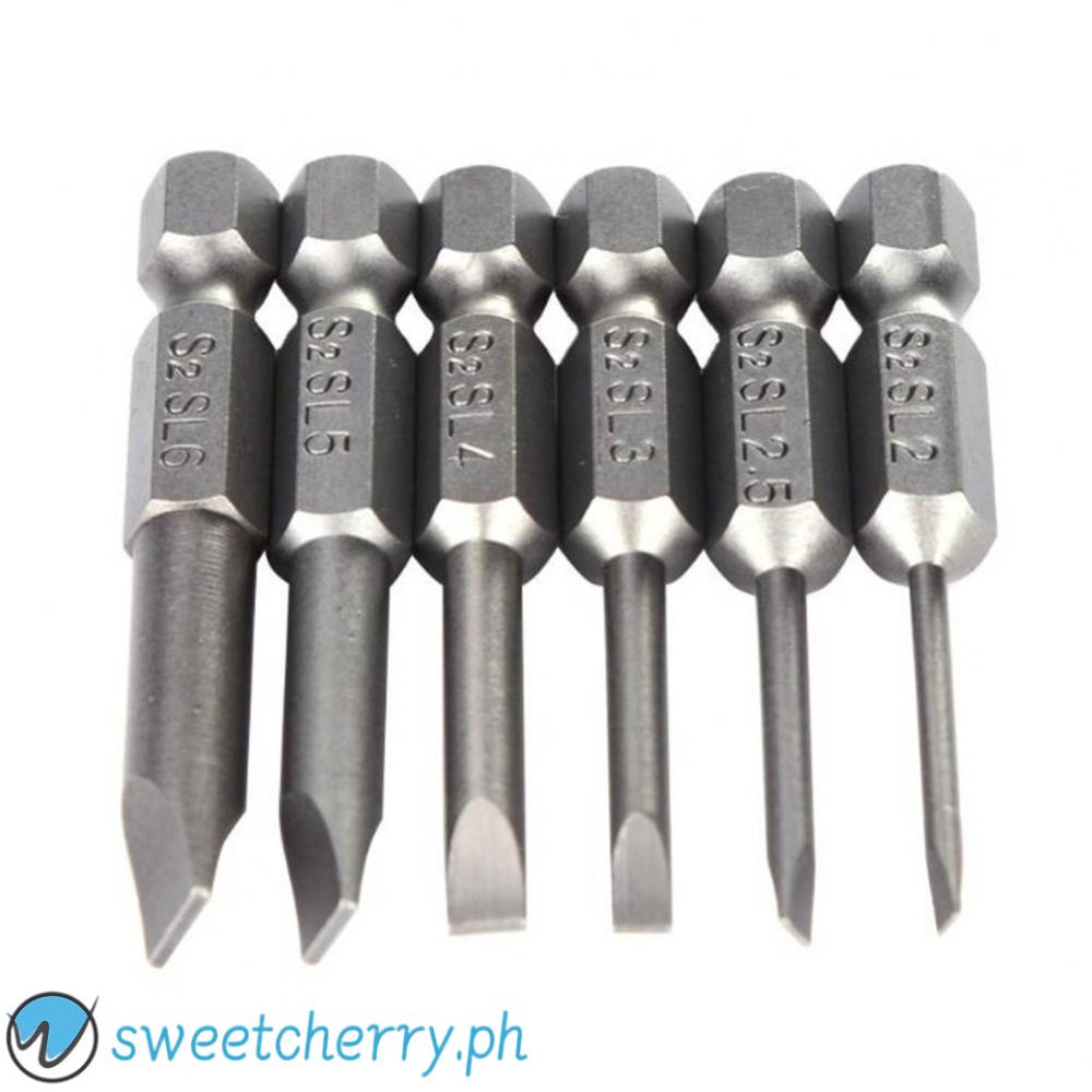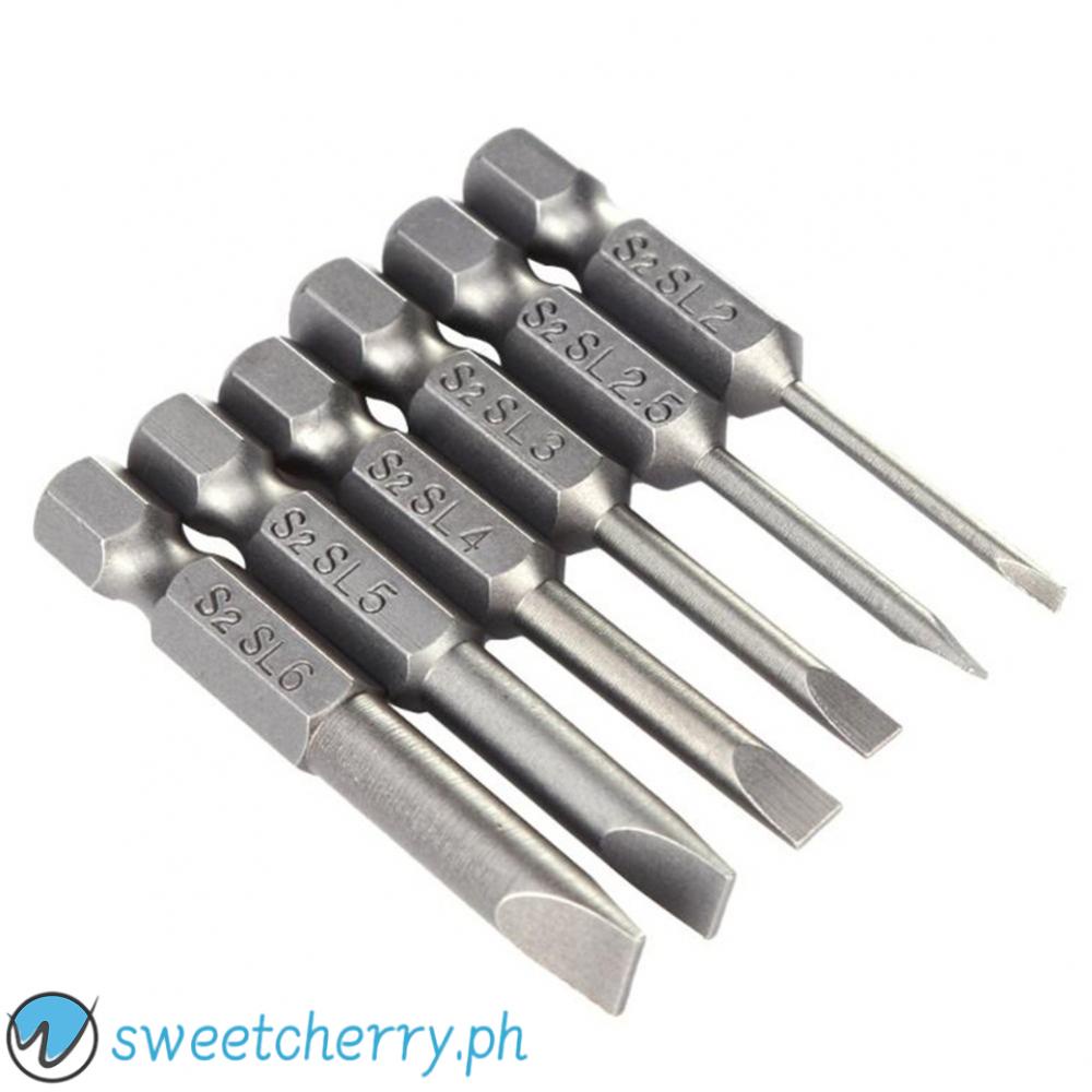 6pcs/set 50mm flat head flat head magnetic screwdriver bit flat head electric screwdriver bit 2.0-6.0mm (hot selling spot factory direct sales)