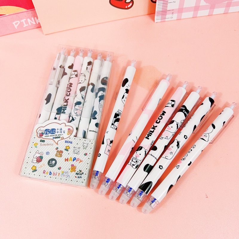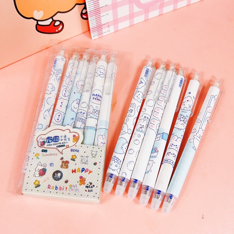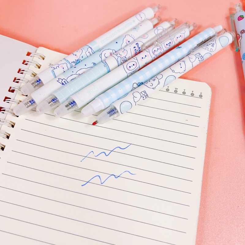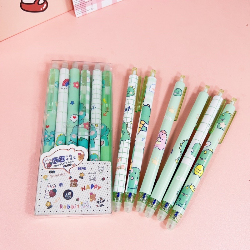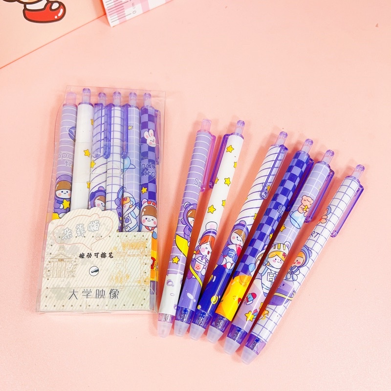 6pcs/set Cute cartoon Erasable Blue Gel ink pen 0.5mm press pen Magic Eraser office student pen