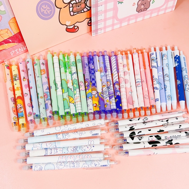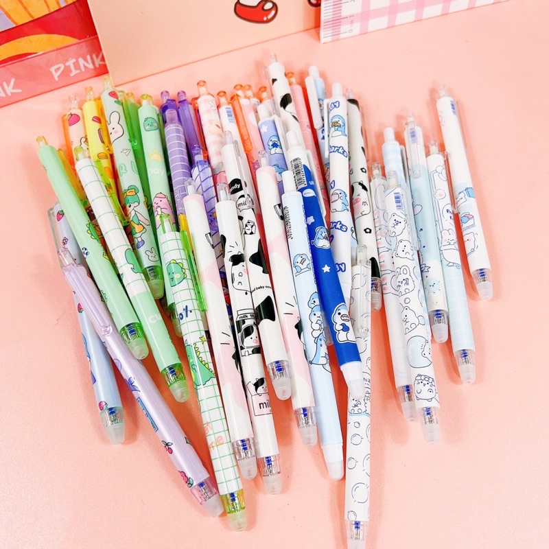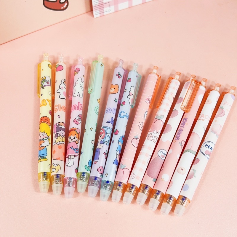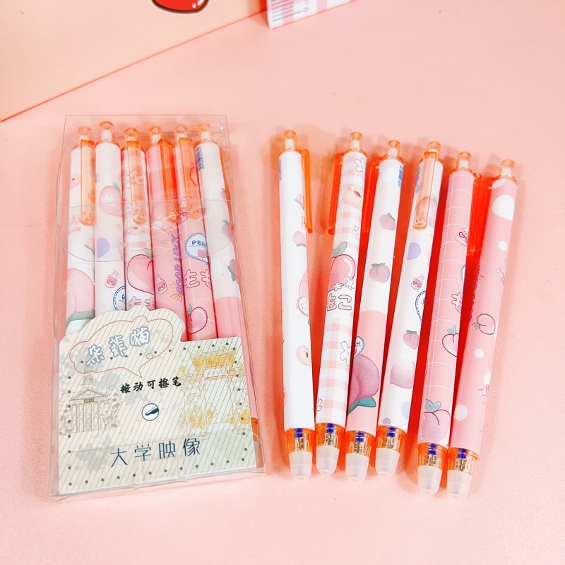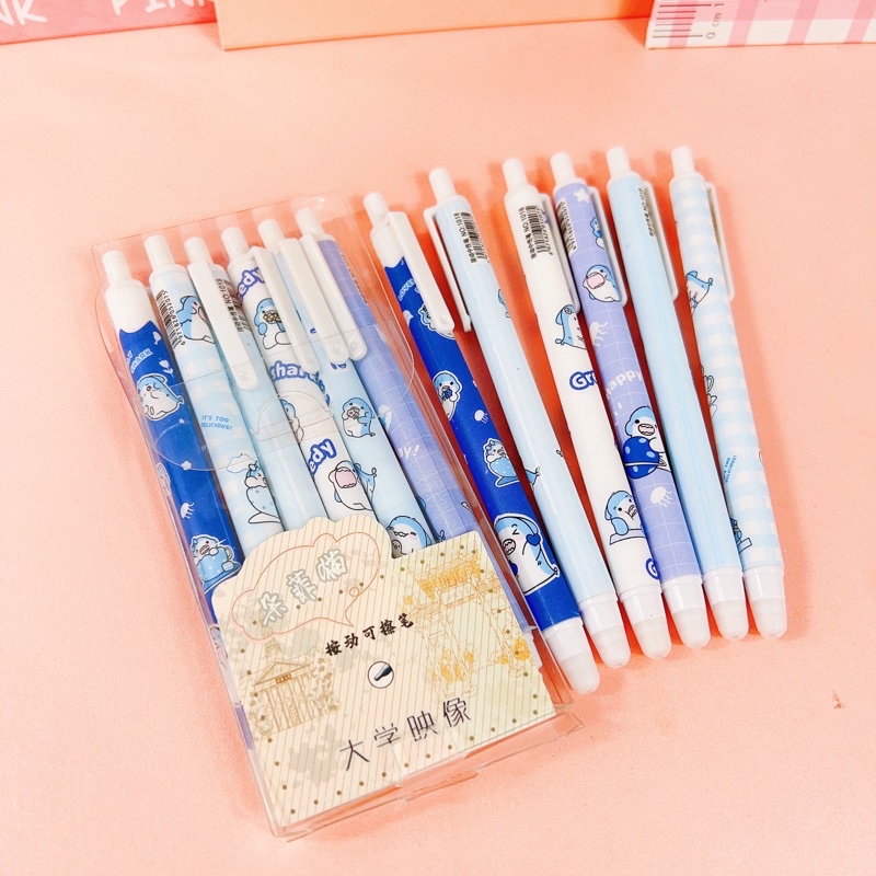 6pcs/set Cute cartoon Erasable Blue Gel ink pen 0.5mm press pen Magic Eraser office student pen