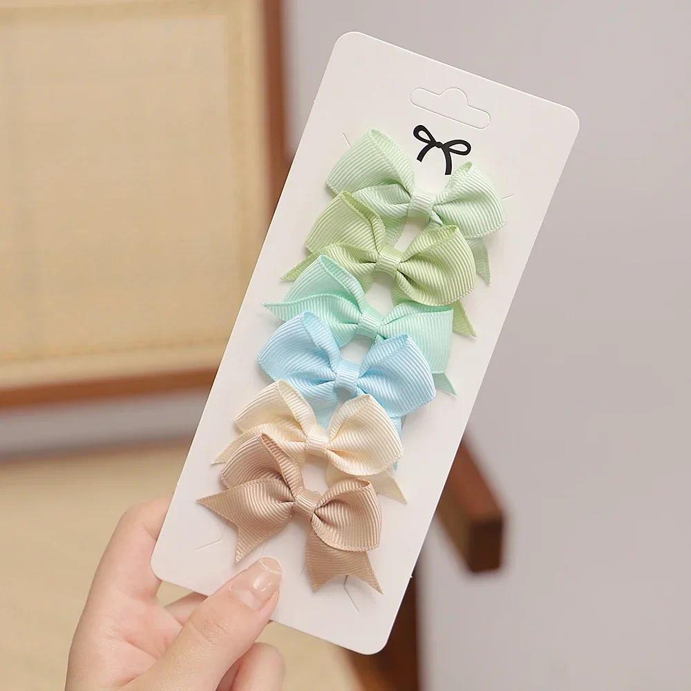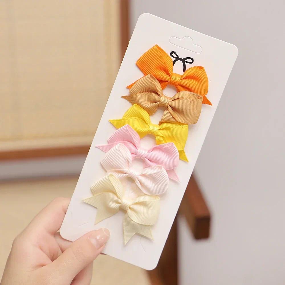 6pcs/set Mini Clip Hair Clip Set with Bow Solid Color Style Children's Hair Accessories