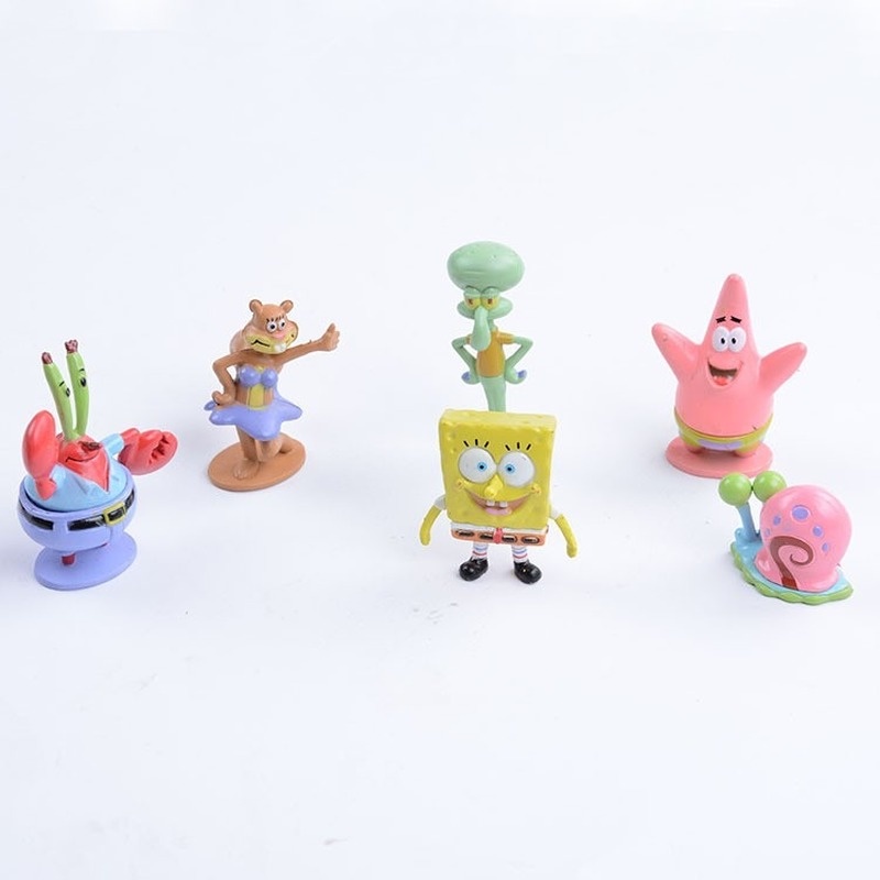 6pcs/set SpongeBob Squarepants Patrick Star Squidward Tentacles Action Figures Cake Topper Toys