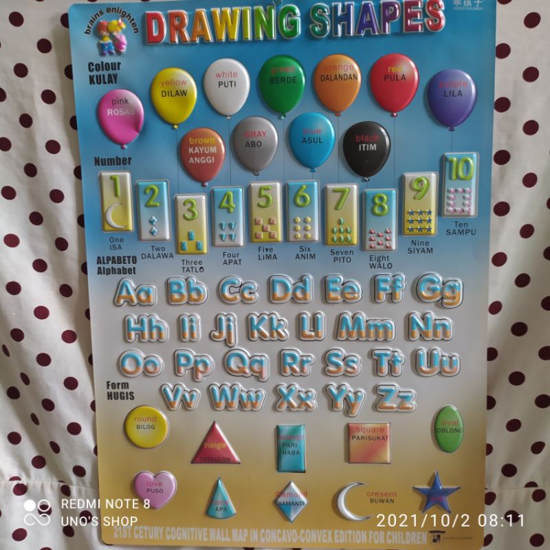 Educational plastic chart embossed 16x22 inch (7 or 12pcs)