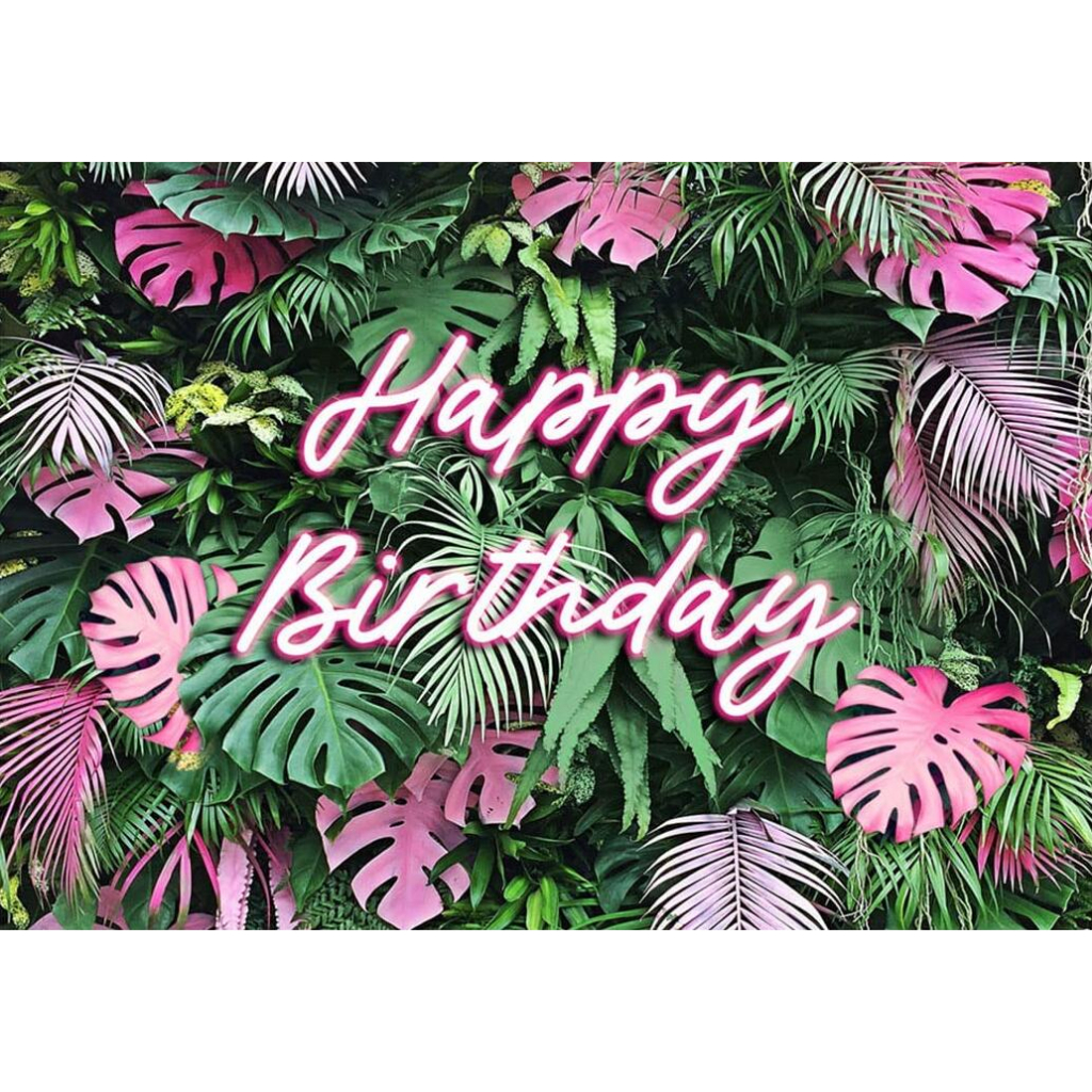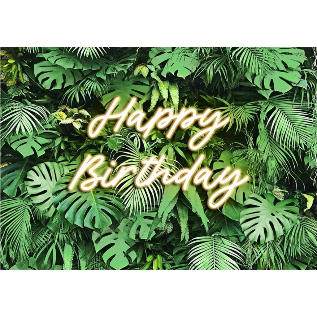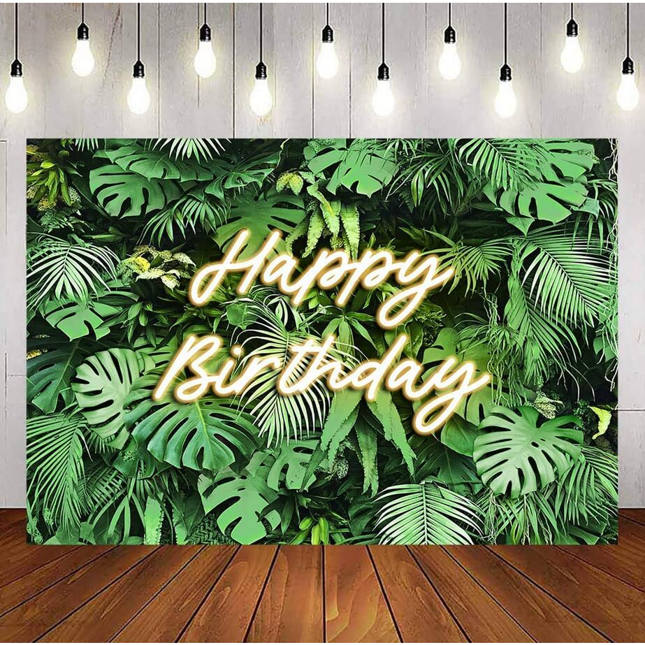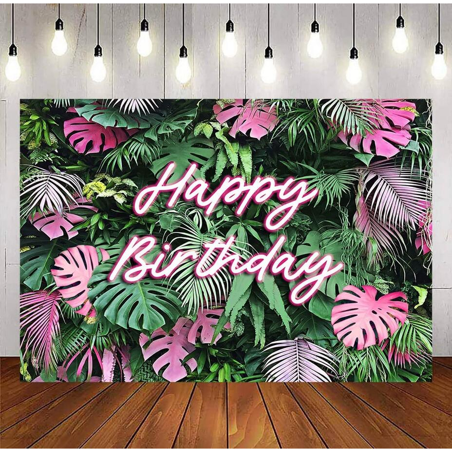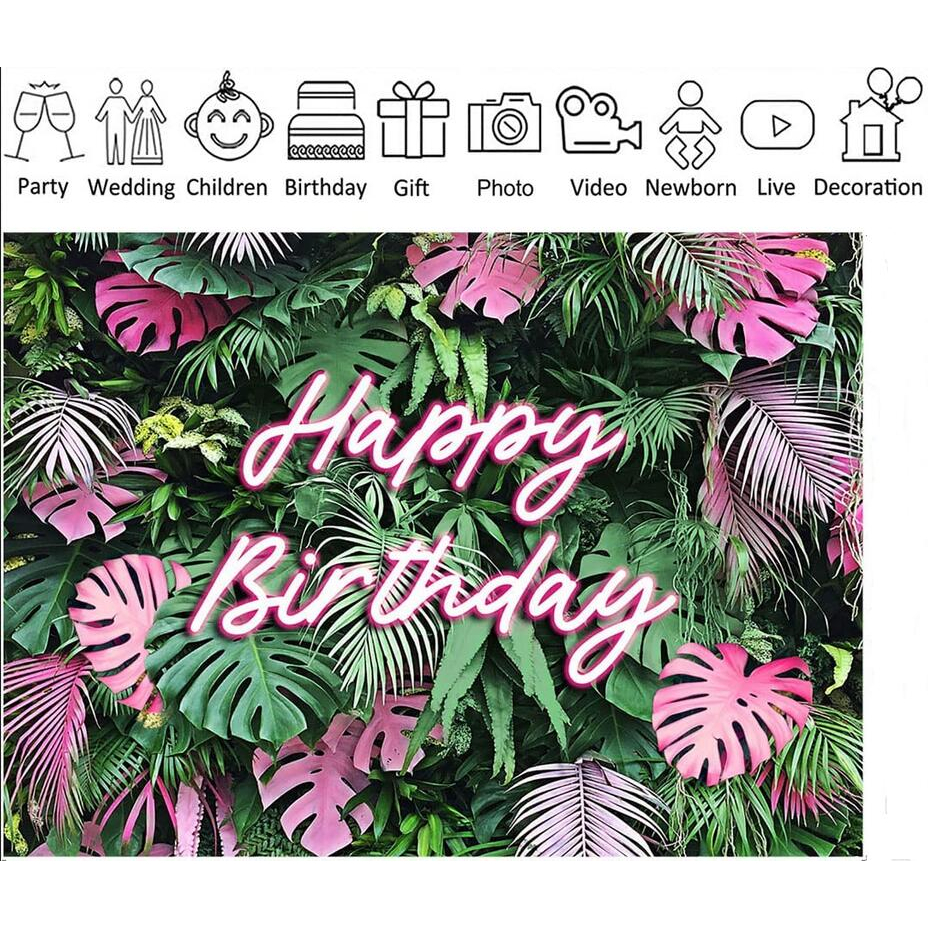 6x4ft Hawaiian Tropical Palm Leaves Birthday Backdrop Green Leaves Neon Happy Birthday Photography Background Aloha Luau Birthday Party Backdrop Supplies
