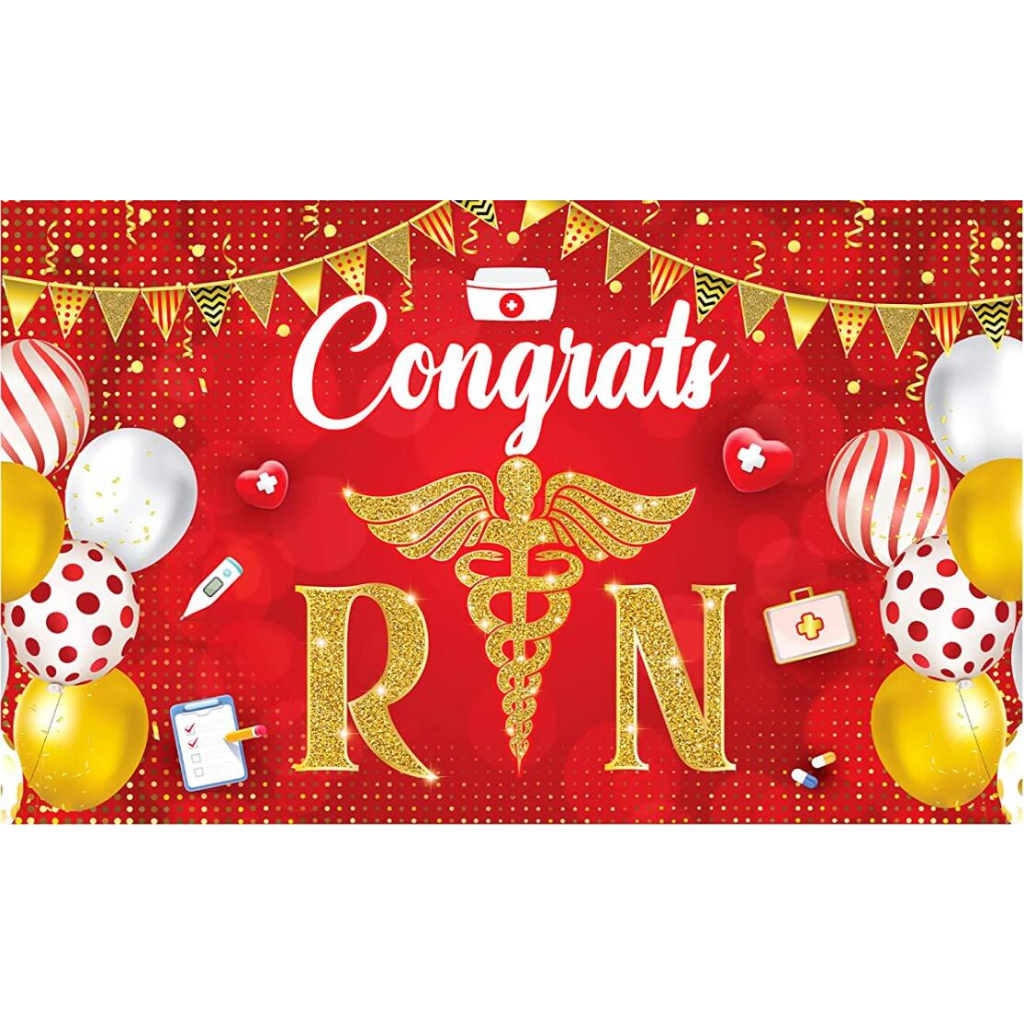 6x4ft Red and Blue Congrats Nurse Photography Background Nurse Graduation Decorations Class of 2023 Graduation Party Decorations Banner 2023 Nurse Graduation Decorations