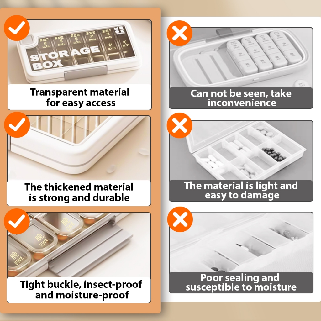 7 Days Medicine Storage Organizer 21 Grids 3 Times One Day Weekly Pill Box Storage Case Container