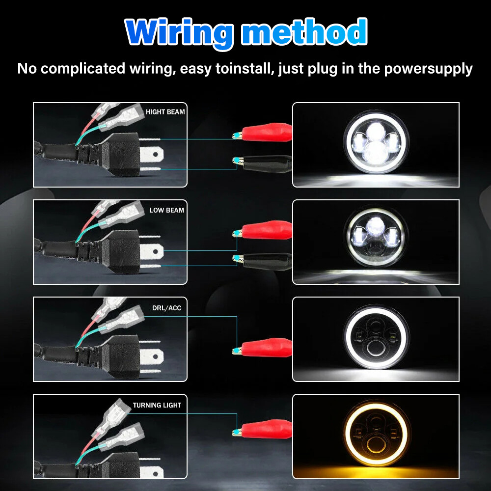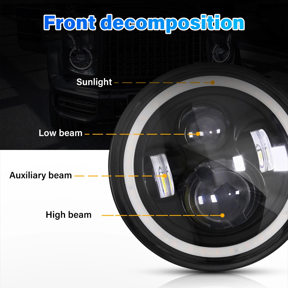 7 Inch LED Jeep Headlights 140W 12-24V DRL Hi Beam Ring Amber Angel Eye led light for Motorcycle/Car