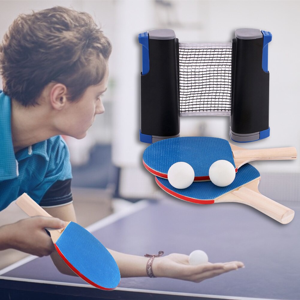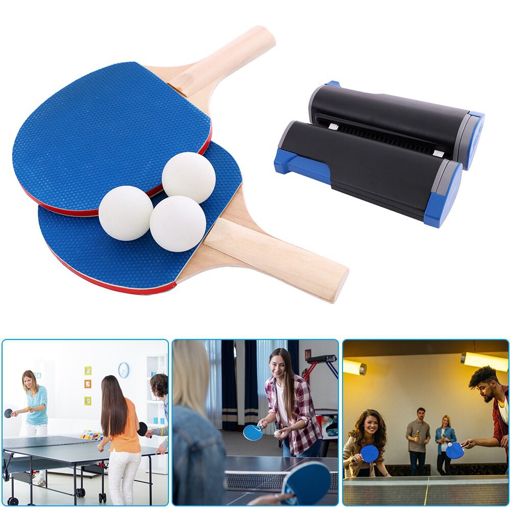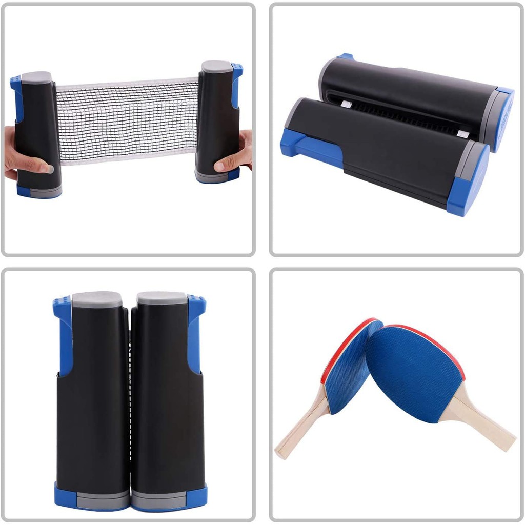 7-Piece Retractable Table Tennis Game Set All-in-ONE Ping Pong Set for Any Table 2 Ping Pong Paddles/Rackets and 3 Balls