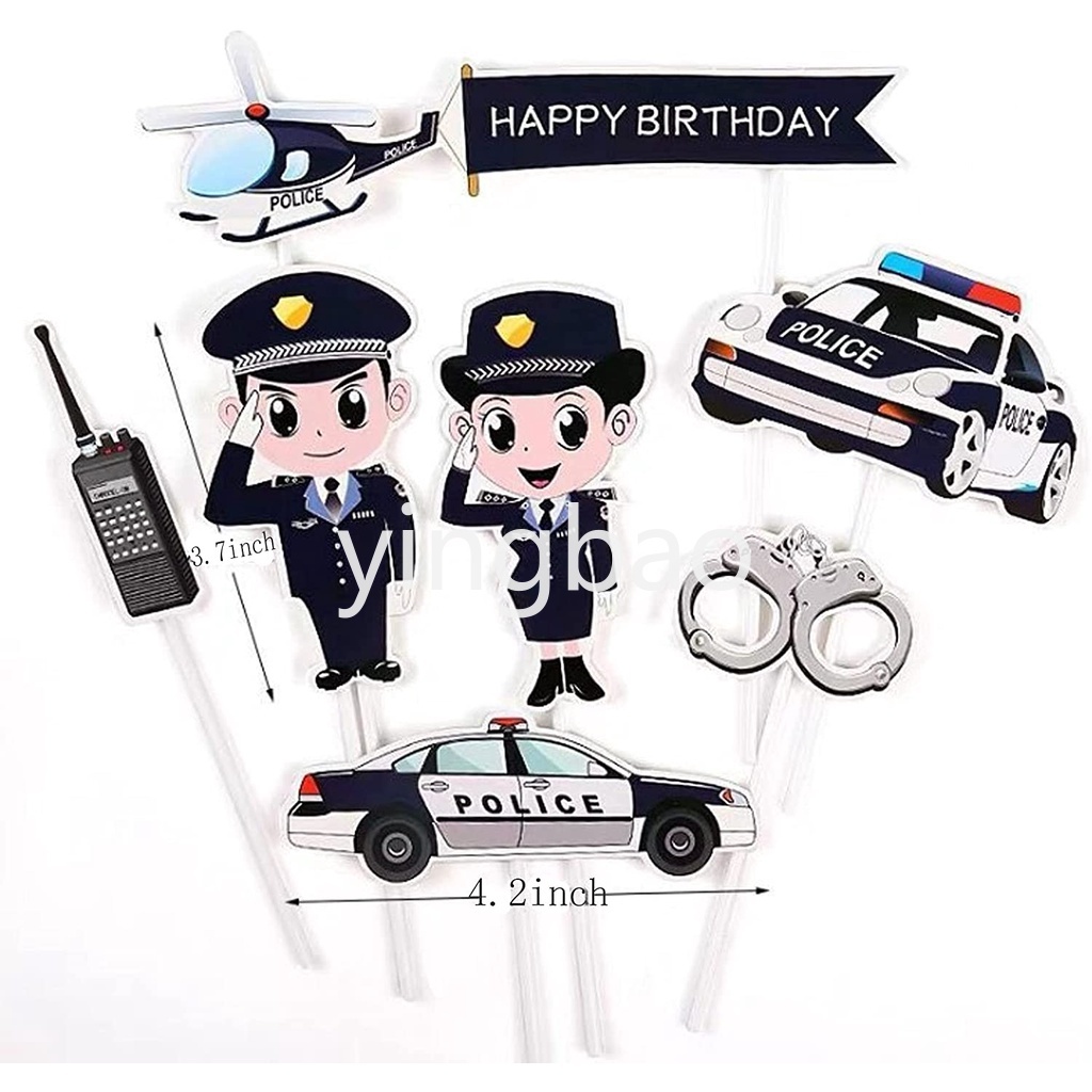 7 Pieces Happy Birthday Cake Topper for Police Day Cake Decorations Police Theme Cake Picks Supplies