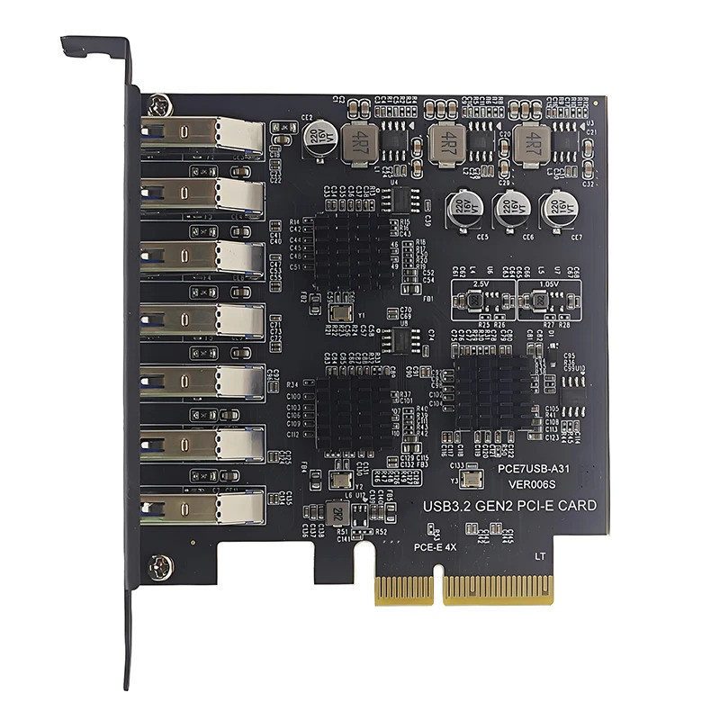 7 Port USB 3.2 GEN2 10Gb PCIE Expansion Card PCI-E PCI Express X4 to USB3.2 HUB Adapter ASM3142 Chip Add On Cards for Desktop PC