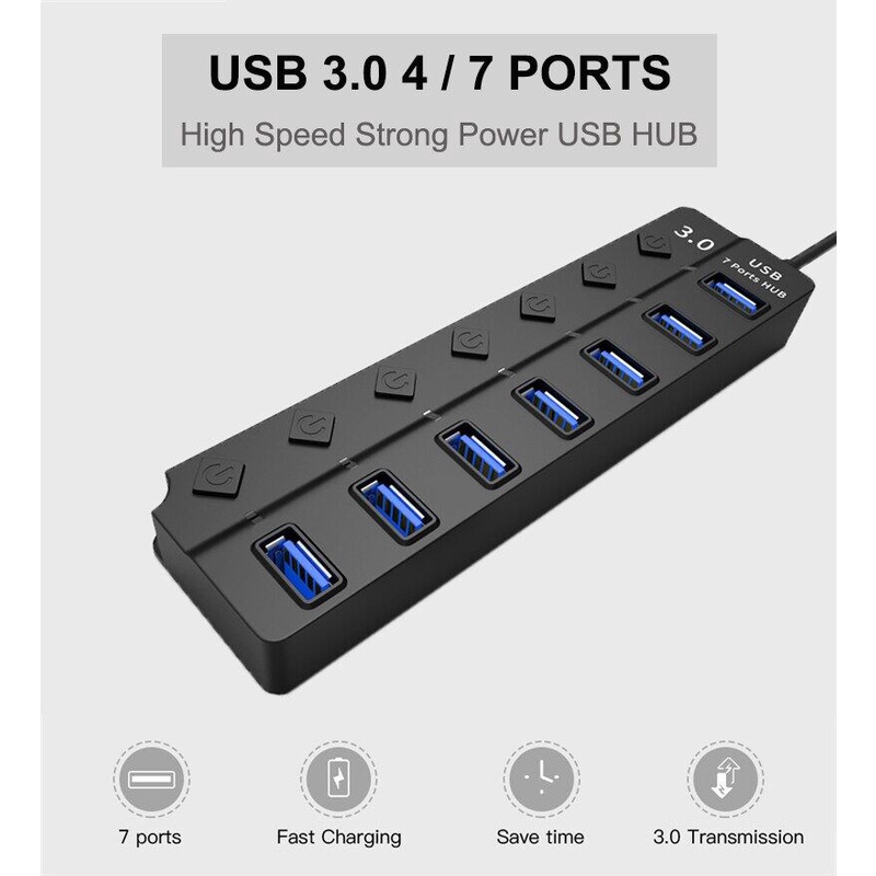 7 Ports USB Hub Port Extension 3.0 High Speed With Switch USB Hub Splitter For Laptop Usb Extension