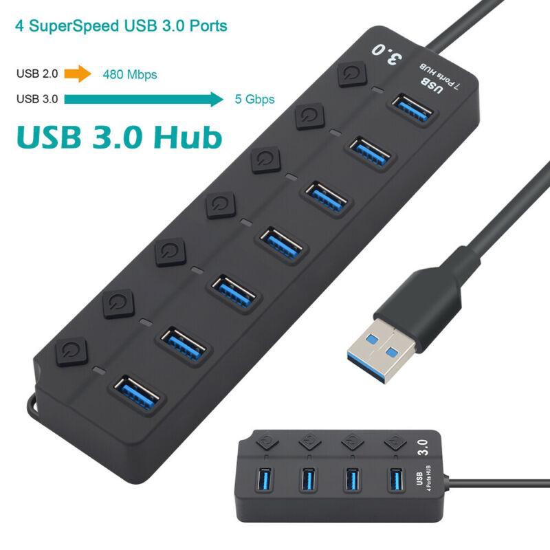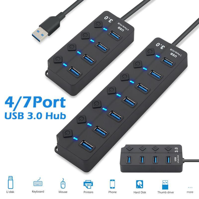 7 Ports USB Port Extension 3.0 High Speed USB Hub For Laptop Multiple Usb Hub Spliter With Switch