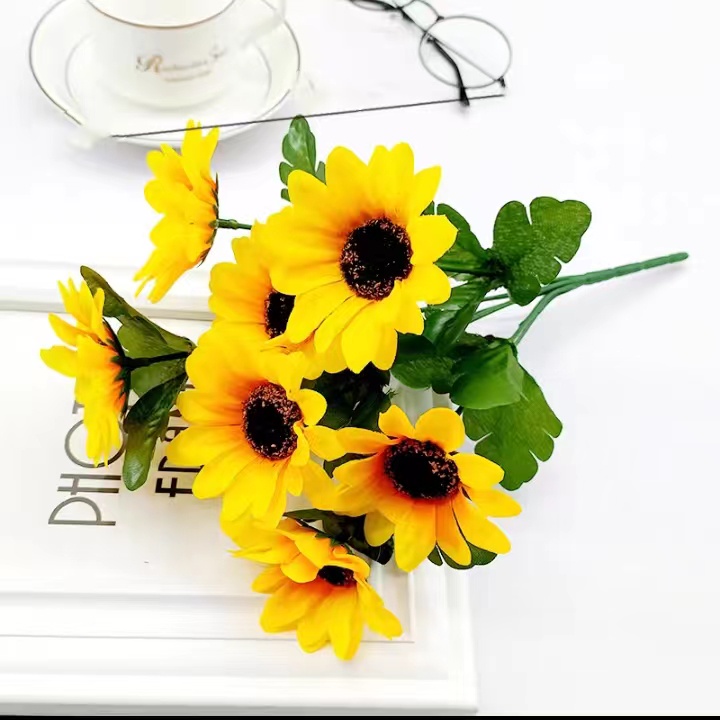 7 head Plant simulation sunflower silk cloth Artificia home school wedding props party decoration
