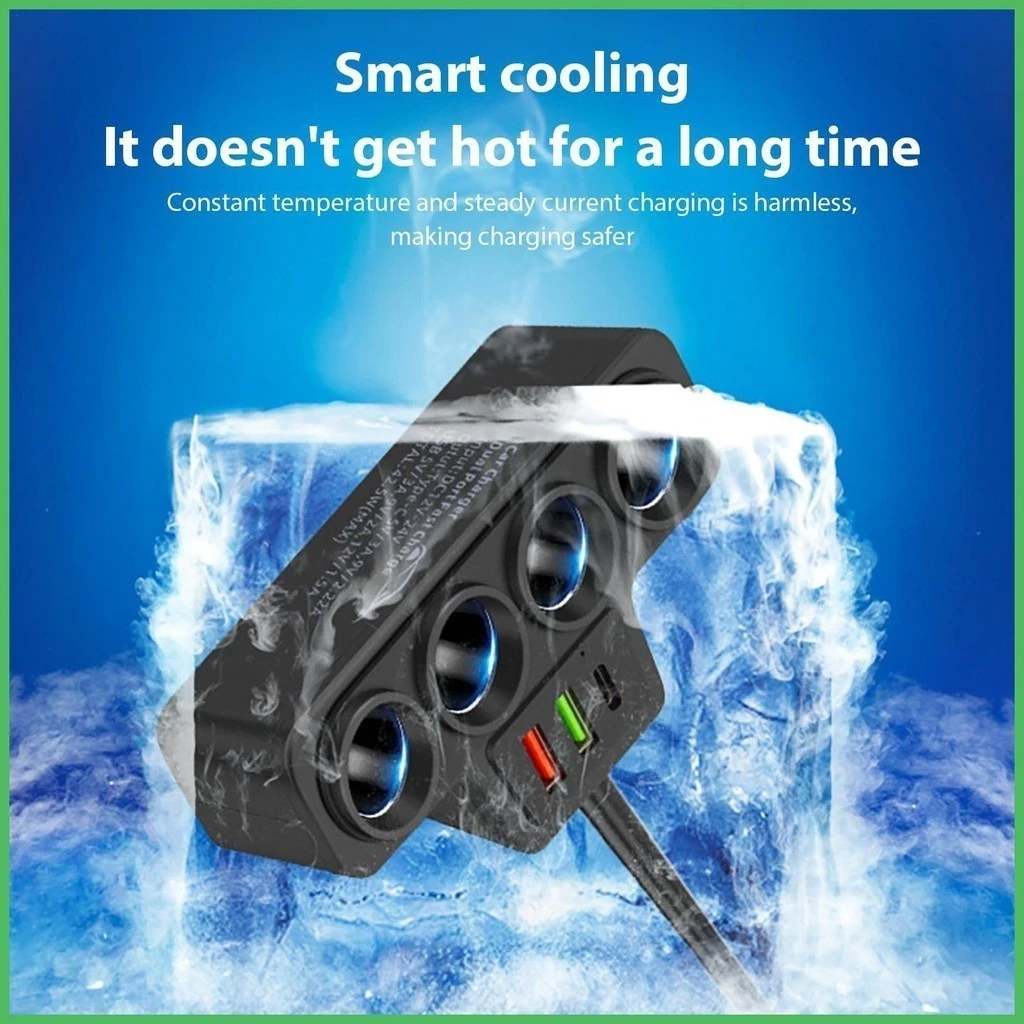 7 in 1 120W/4 Way Car Cigarette Lighter Socket Splitter DC12V-24V 2 USB Smart Car Charger Adapter
