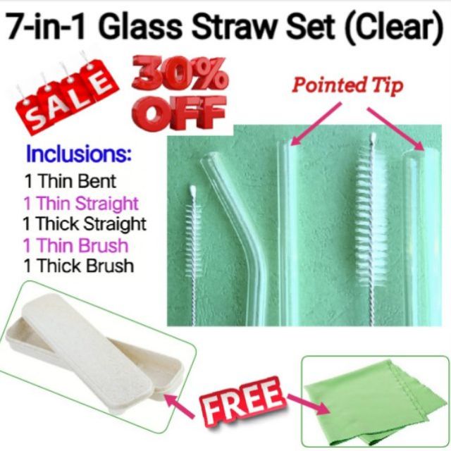 *7-in-1 Glass Straws Set (Clear) Eco Friendly.