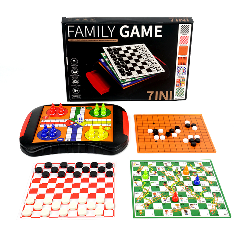 7 in 1 Ludo/Chess/Checkers/Snakes and Ladders/Chinese Checkers/Backgammon/Gomoku Board Game for Kids Toys Funny Gift