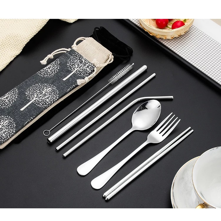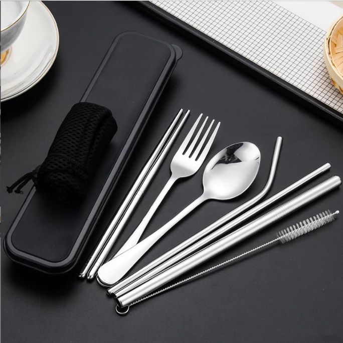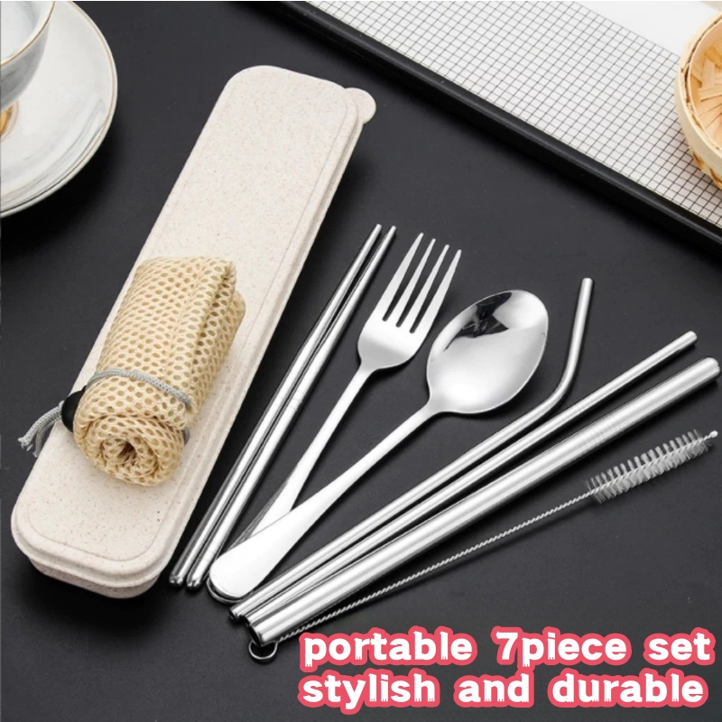 7 in 1Portable fork and stainless spoon set fork organizer chopstick utensil for kids case cutlery