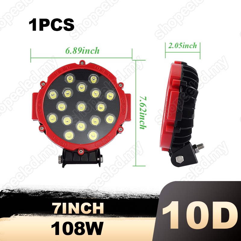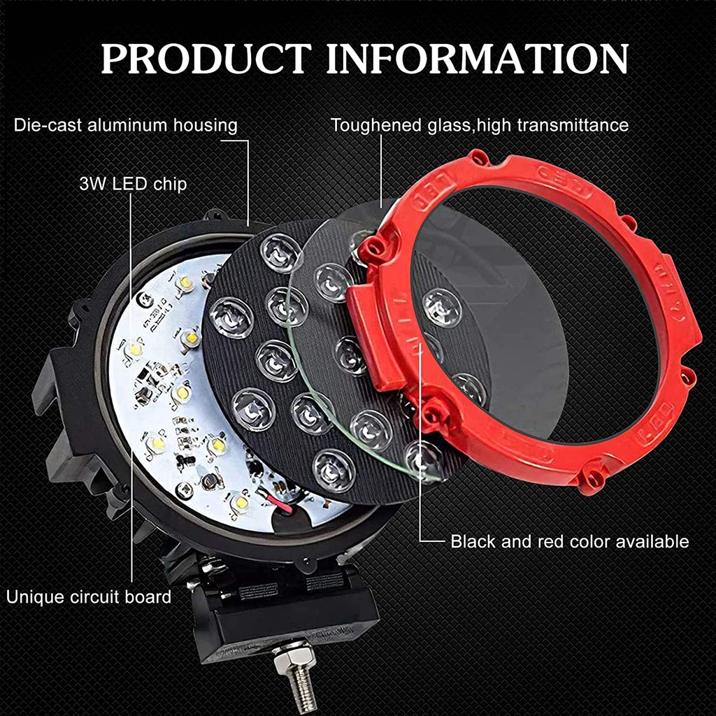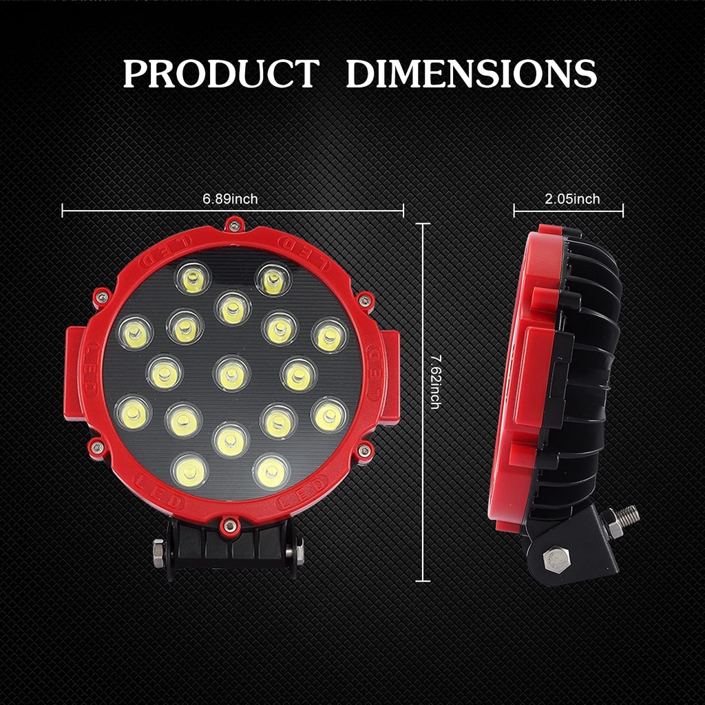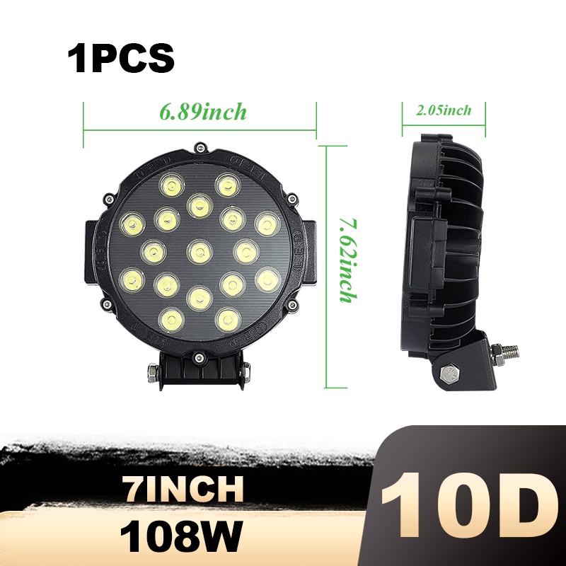 7 inch 51W Round LED Work Light Spot Flood Driving Fog Lamp for 4x4 4WD Offroad Truck Tractor SUV 12V 24v