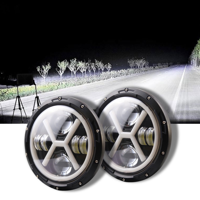 7 inch Harley Motorcycle Lights LED Light X-shaped headlights daytime running lights motorcycle angel front lamp