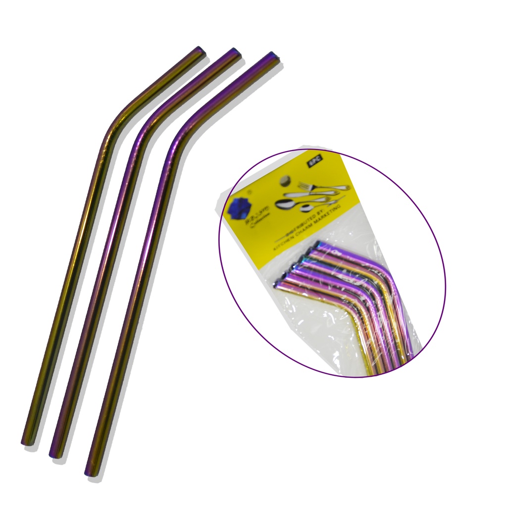 7-piece set Curved Metallic Straw