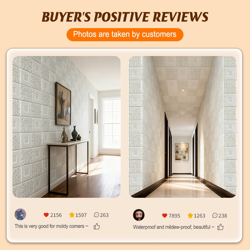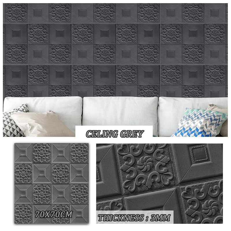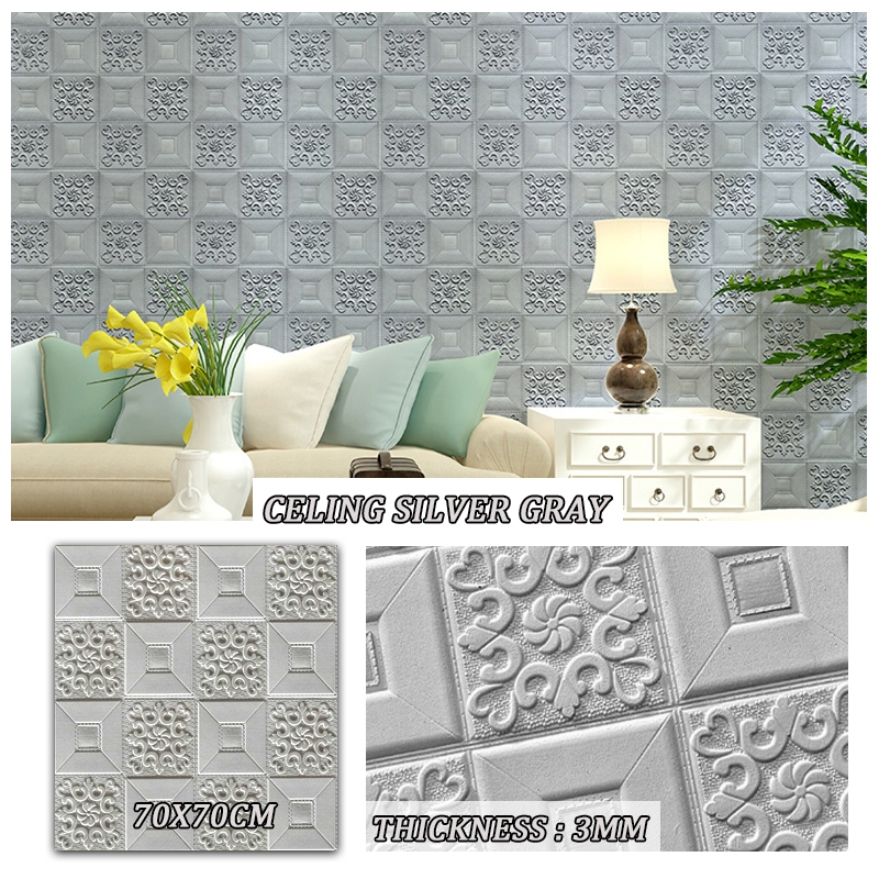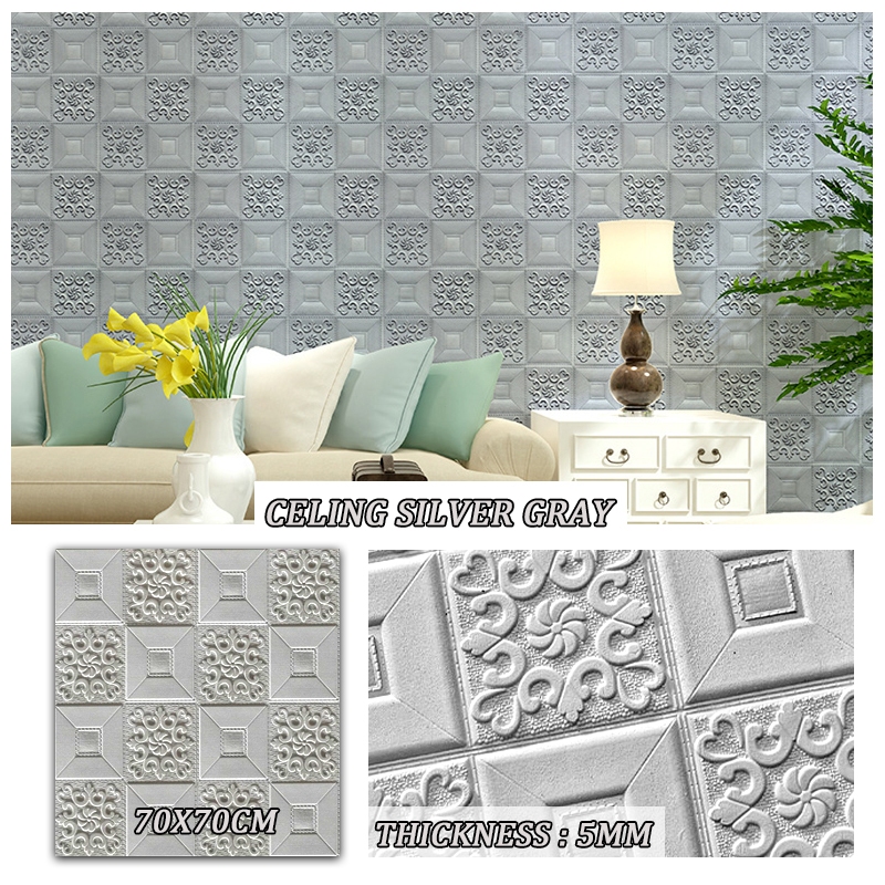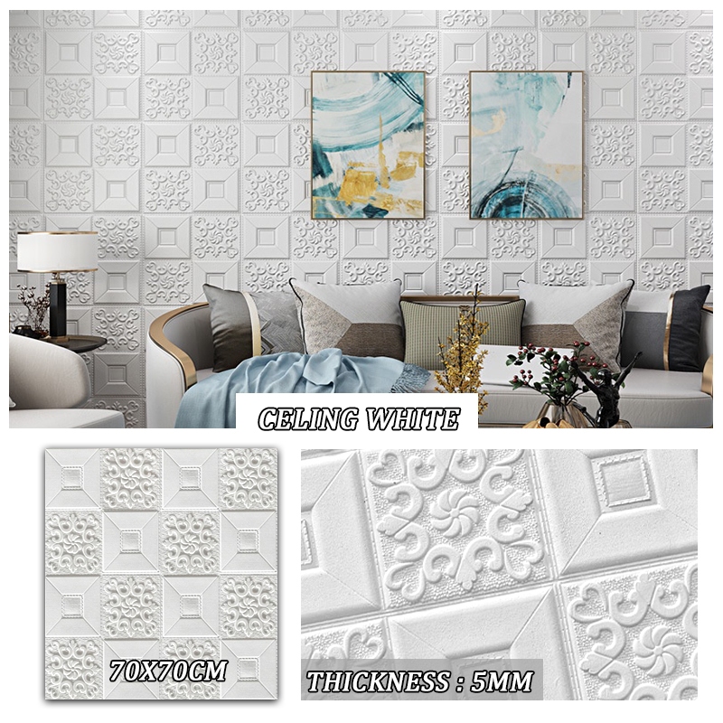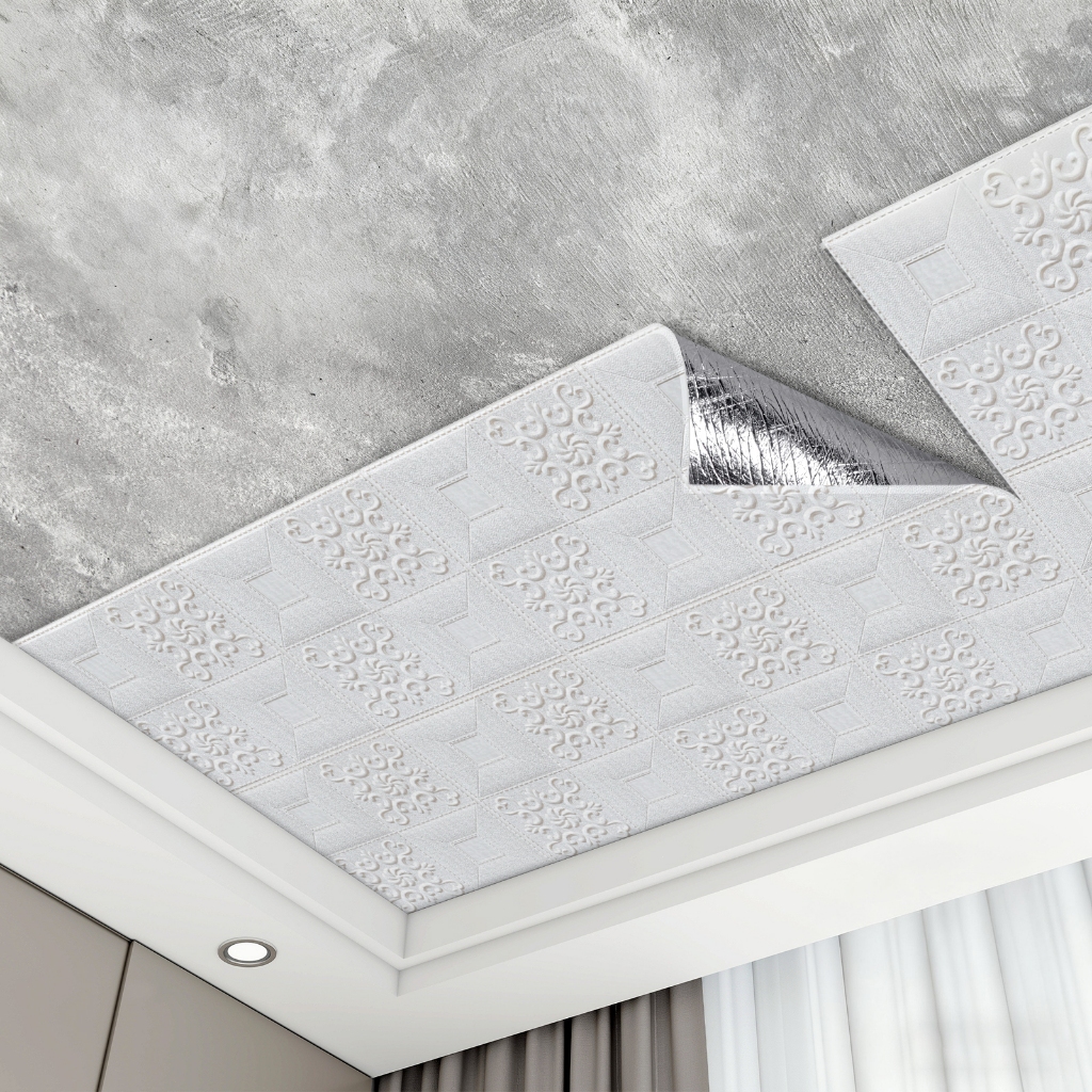 70*70cm 3D Self-adhesive Foam Brick Ceiling Wall Stickers, Safety Waterproof Ceiling Wallpaper