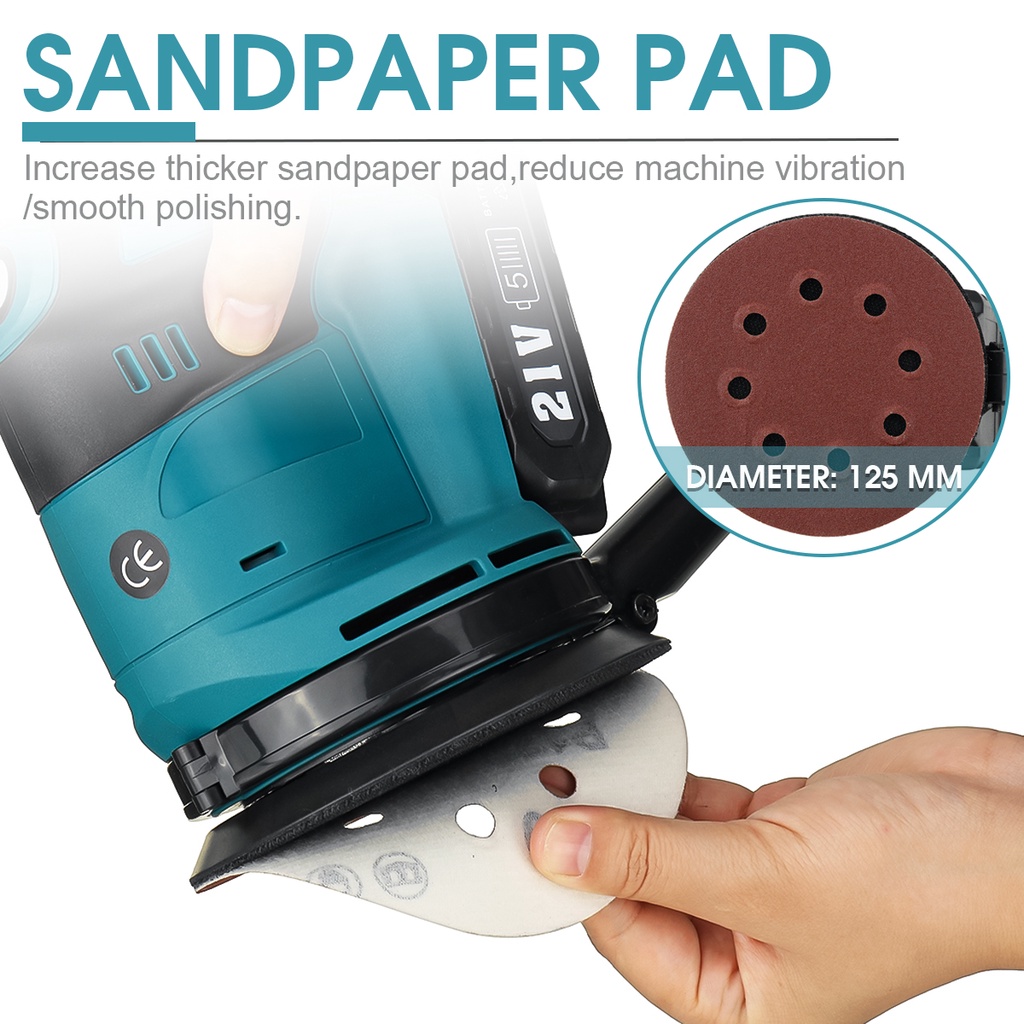 7000 RPM Cordless Random Orbital Electric Sander Wood Grinder Polishing Grinding Sanding Machine 125mm for 21V Battery 600W