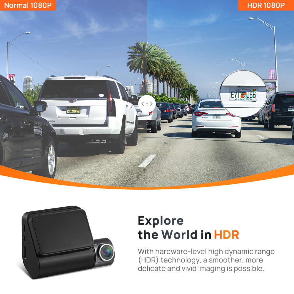 70mai A200 Dashcam 1080P Dual Channel Full HD+HDR 24H Parking Surveillance 2-Inch LED Screen DashCam