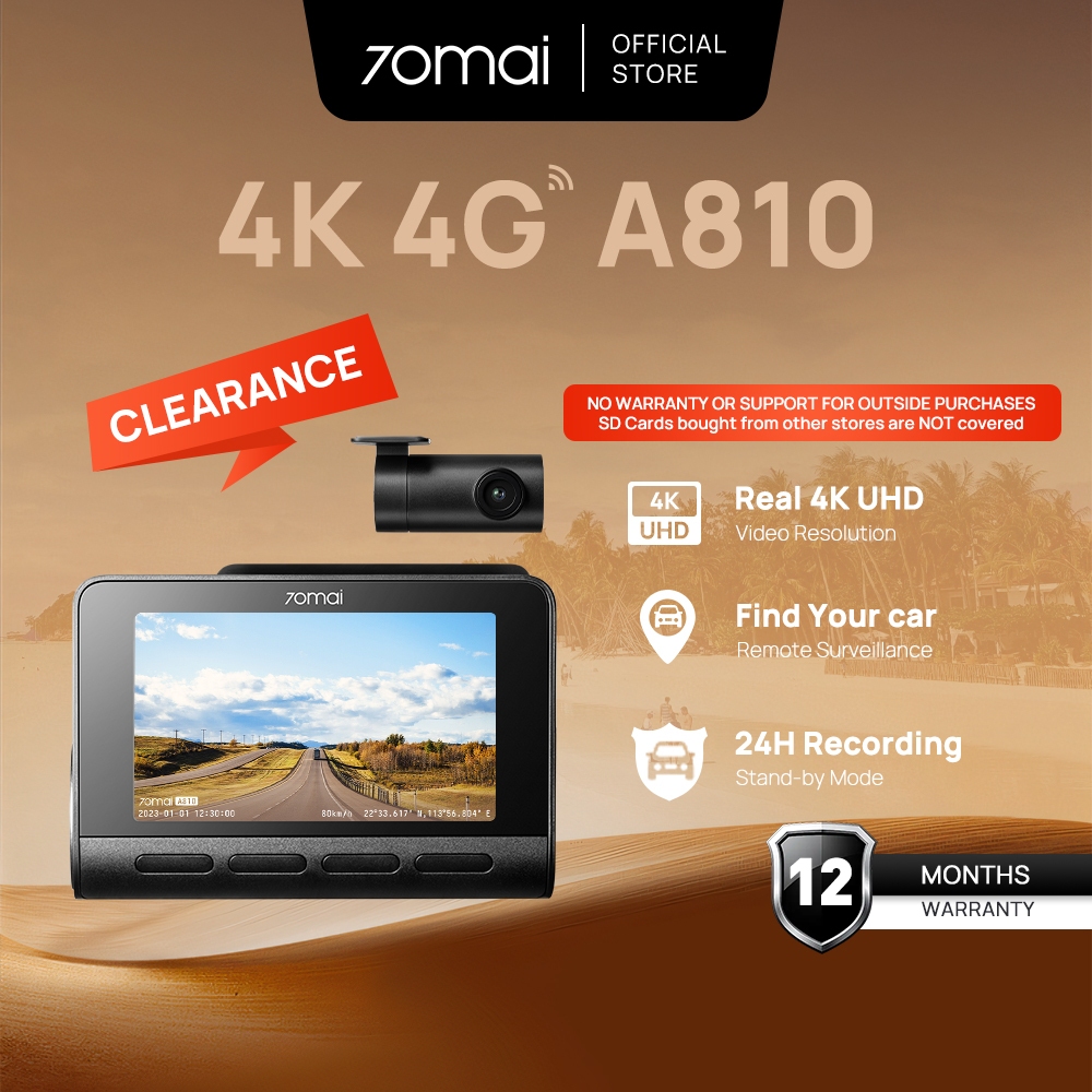70mai A810-2 4K HDR Dash Cam | 4G Dual Channel | Sony IMX678 | AI Motion | GPS Control