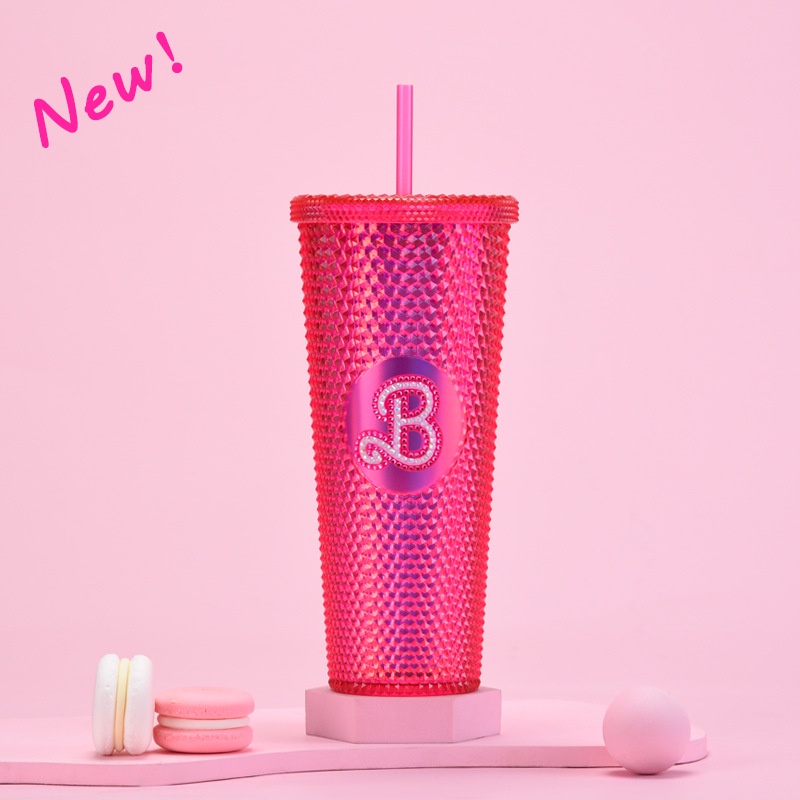 710Ml Barbie tumbler bottle Barbie Pink Cup with Straw Barbies Movie Party Accompanying Cup Kawaii Portable Drinking Bottle Milk Juice Glass Gifts