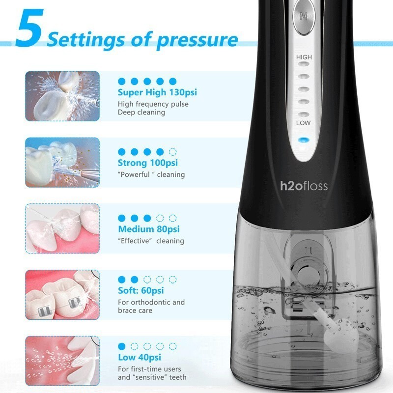 H2ofloss Cordless Water Flosser for Teeth Dental cleaner Rechargeable Portable Deep Oral Irrigator