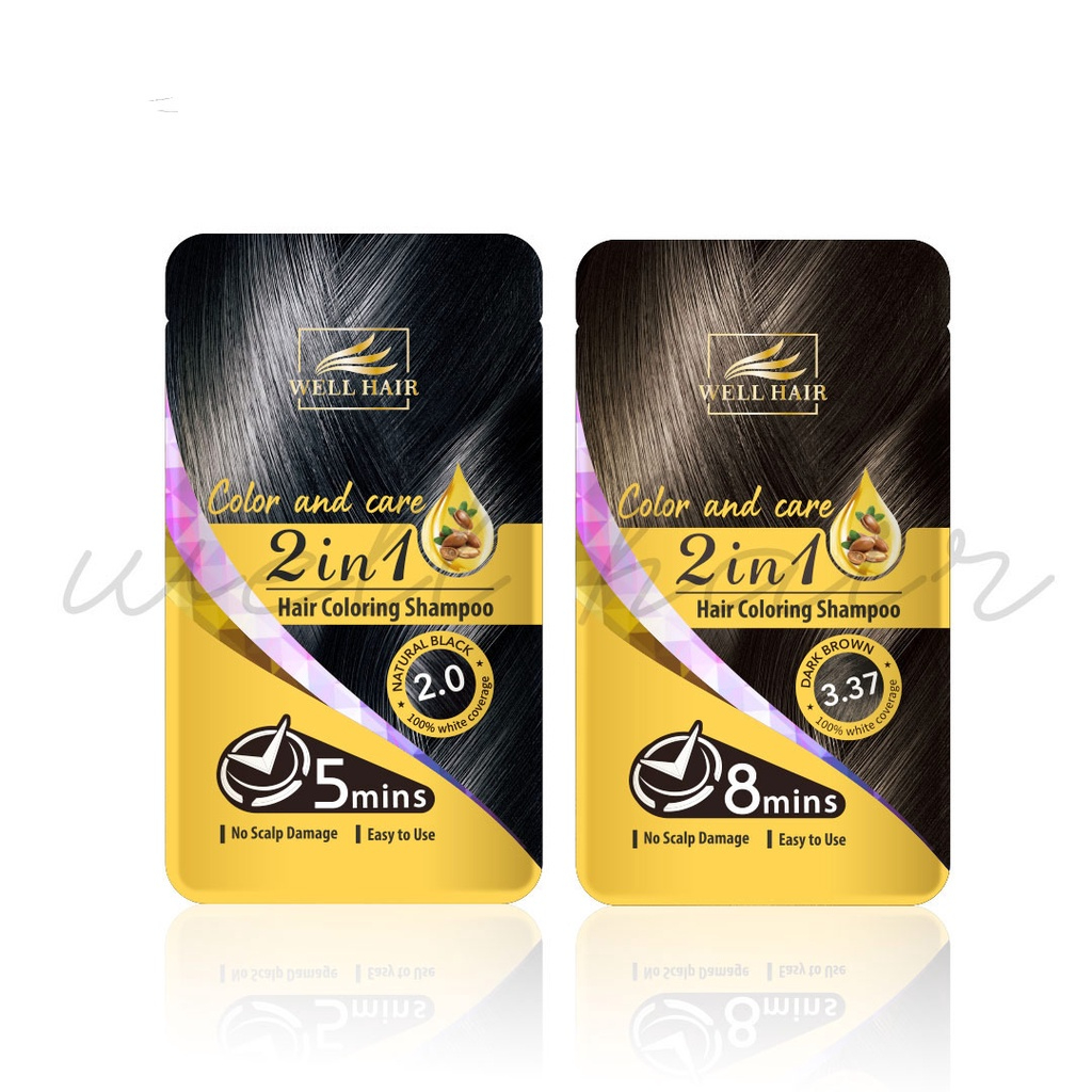 Well hair Color Shampoo Covering White hair 30 ml Black and Brown