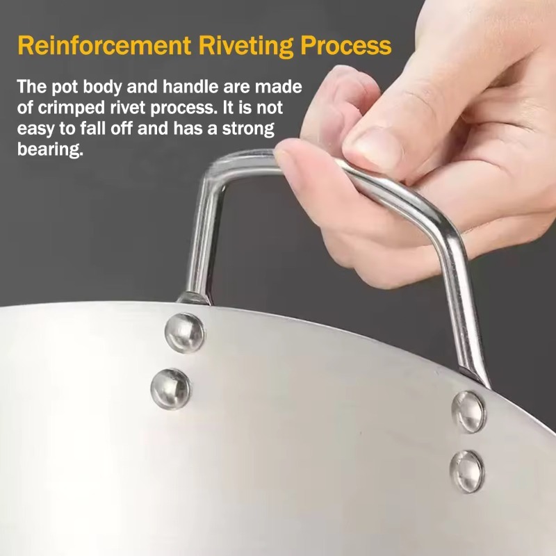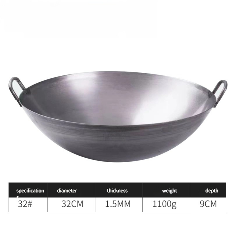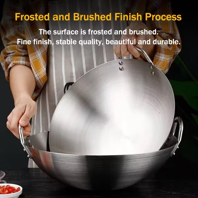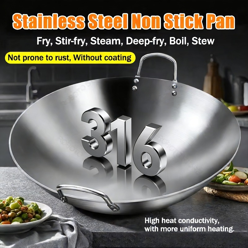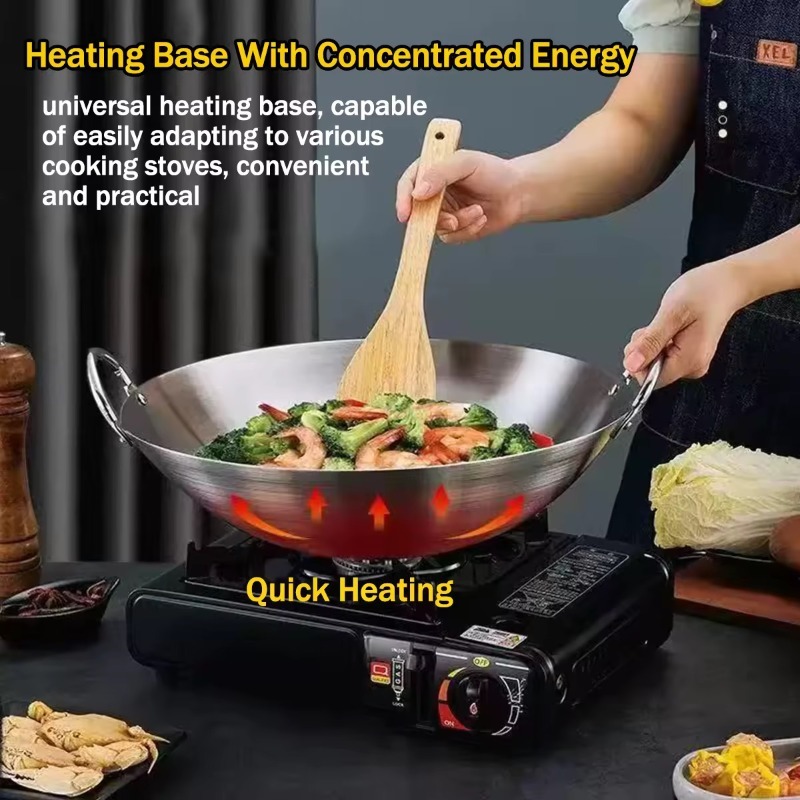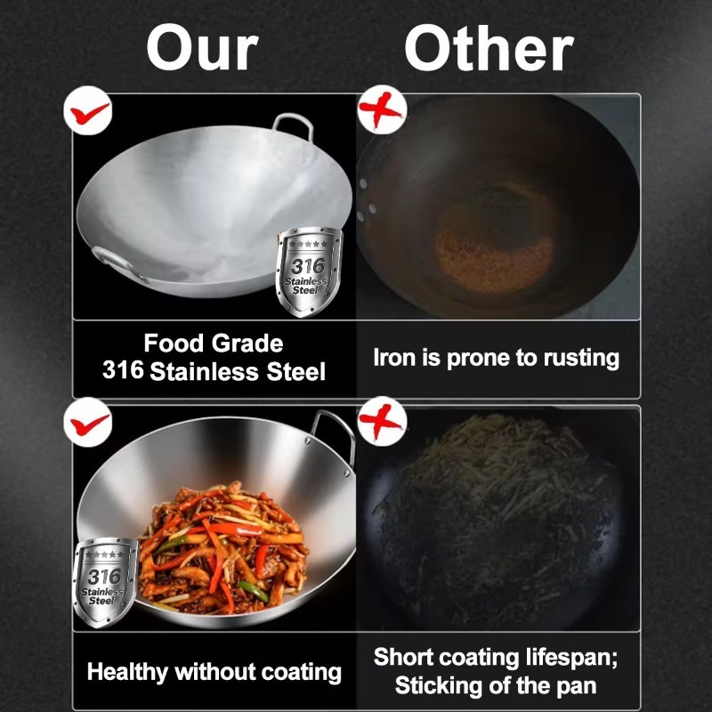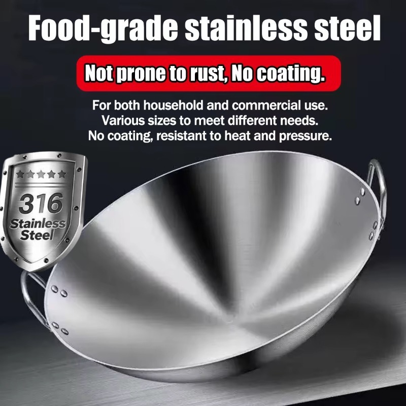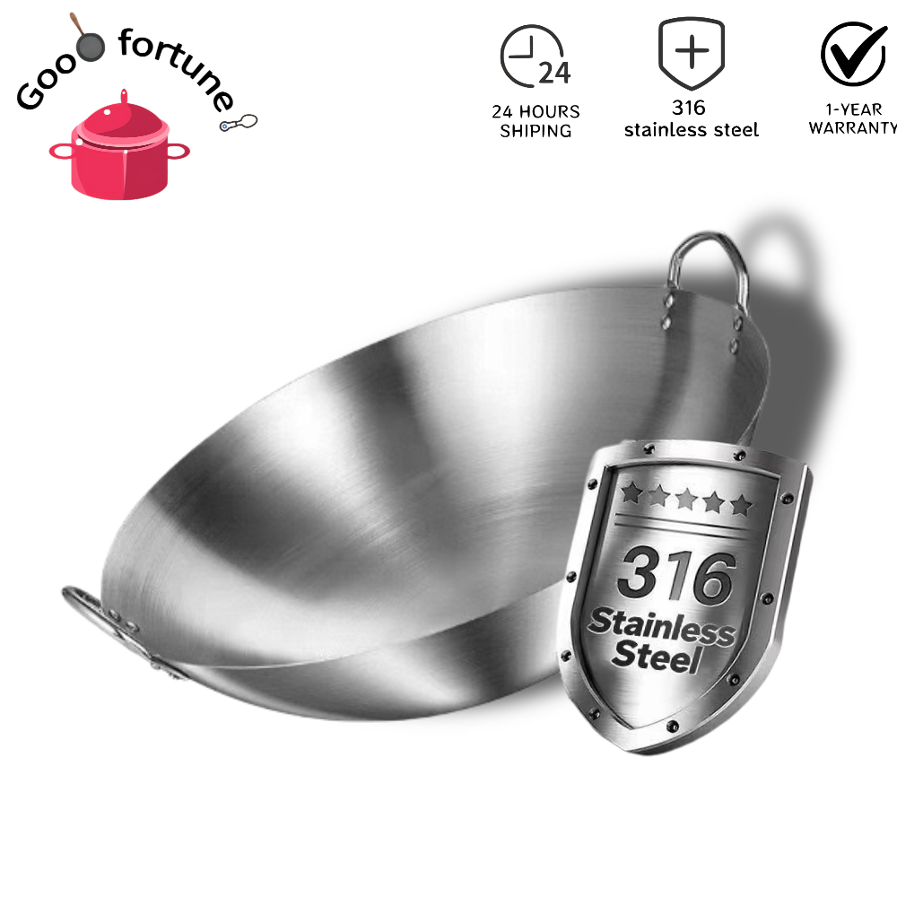 【Big Size】32/40/50cm 316Stainless Steel Wok Raging Fire Stove Frying Pan Double Ear Iron Pot
