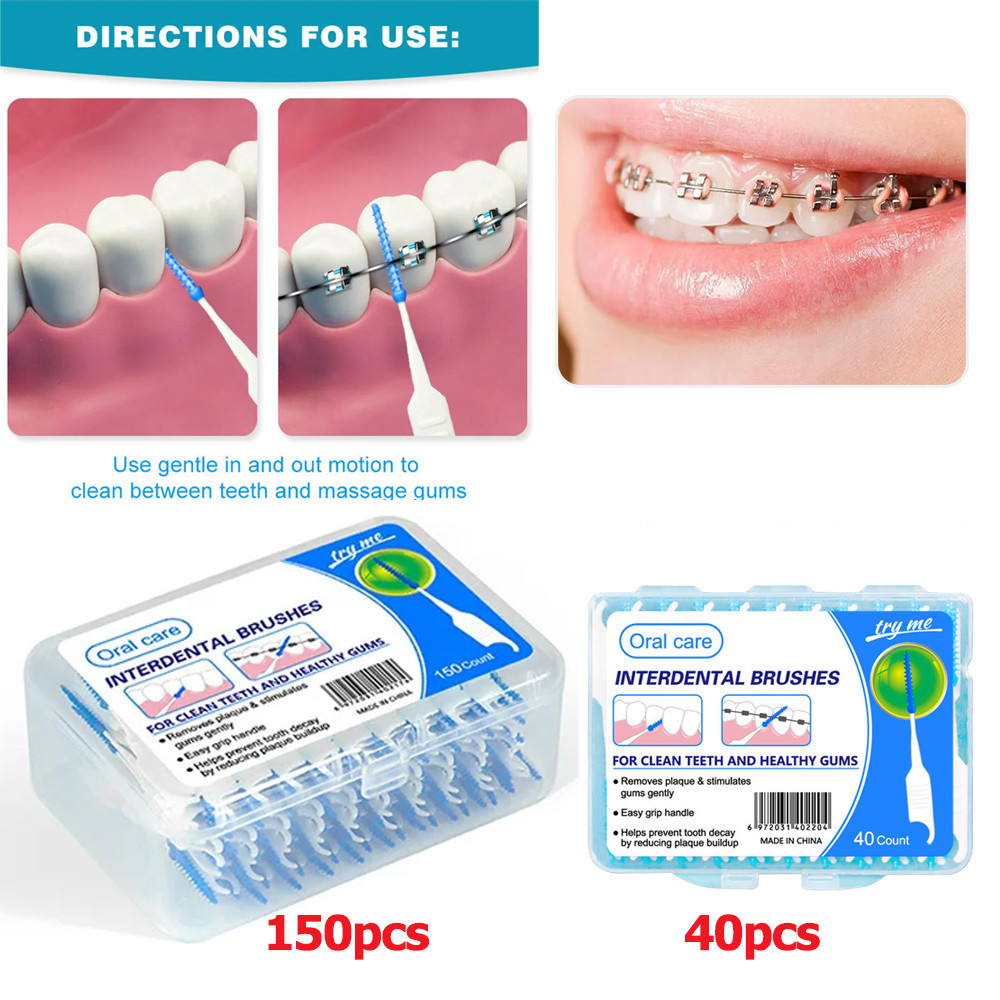 ATDENTAL 150/40pcs Soft Silicone Interdental Brushes for Teeth Gap Cleaning and Water Flosser Use