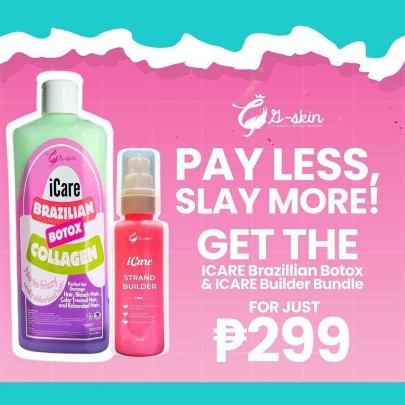 Icare Brazilian Botox Collagen and Icare Strand Builder Bundle 500ml/60ml Hair Treatment