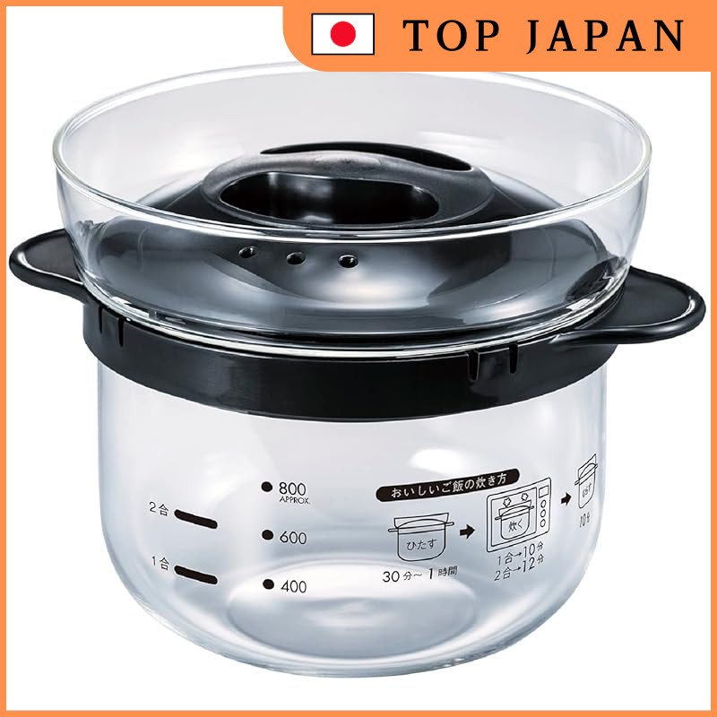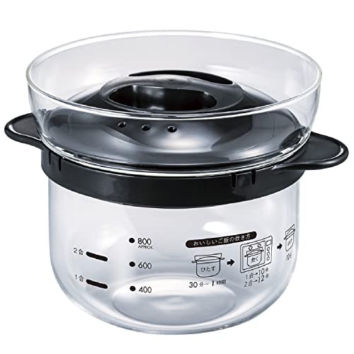 HARIO Microwave Rice Cooker for 1-2 Cups - Black, Made in Japan, Perfect Gift for Home Cooking