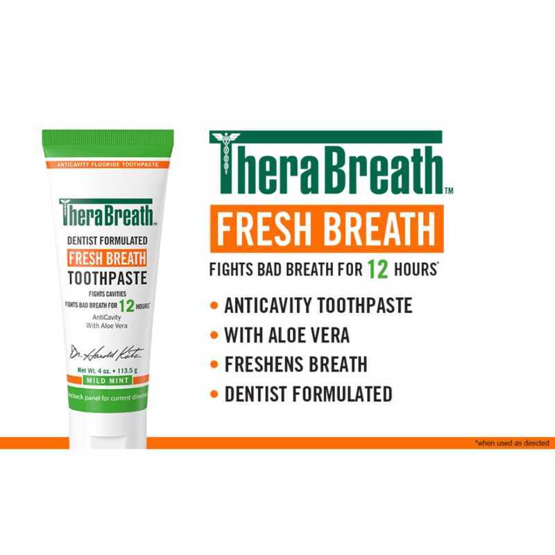 Therabreath Fresh Breath Toothpaste Regular With Fluoride, Mild Mint Flavor 4 Ounce Tube 8C8