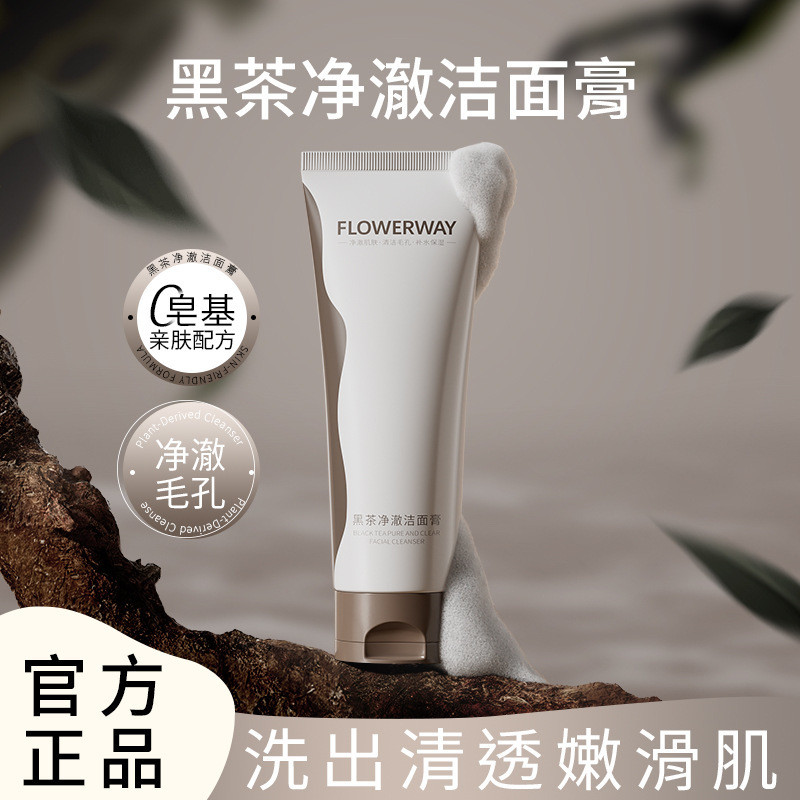 FLOWERWAY Black Tea Cleansing Cream Mild Refreshing Facial Cleanser Oil Control Moisturizing Deep Cleansing Pores FFLOWERWAY Black Tea Face xiaowanzi688.my20260203