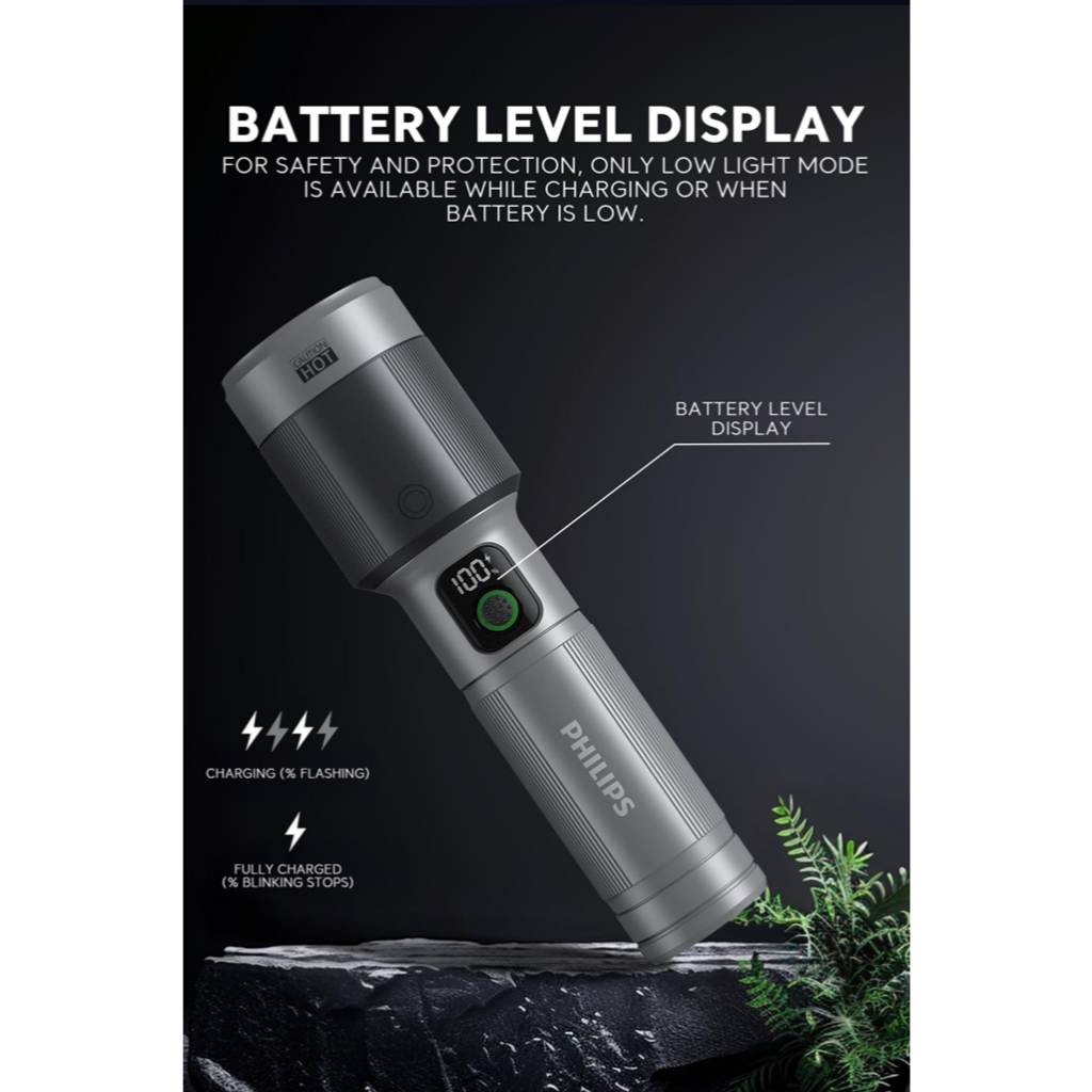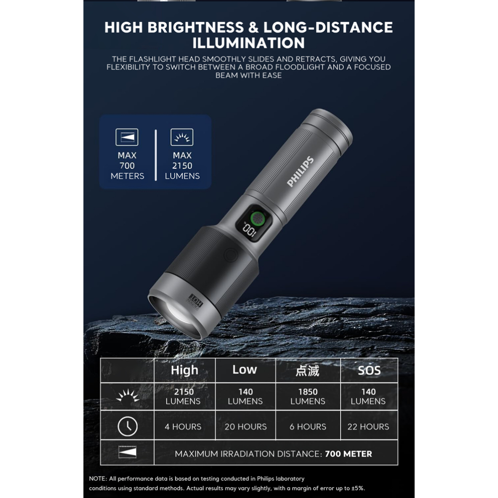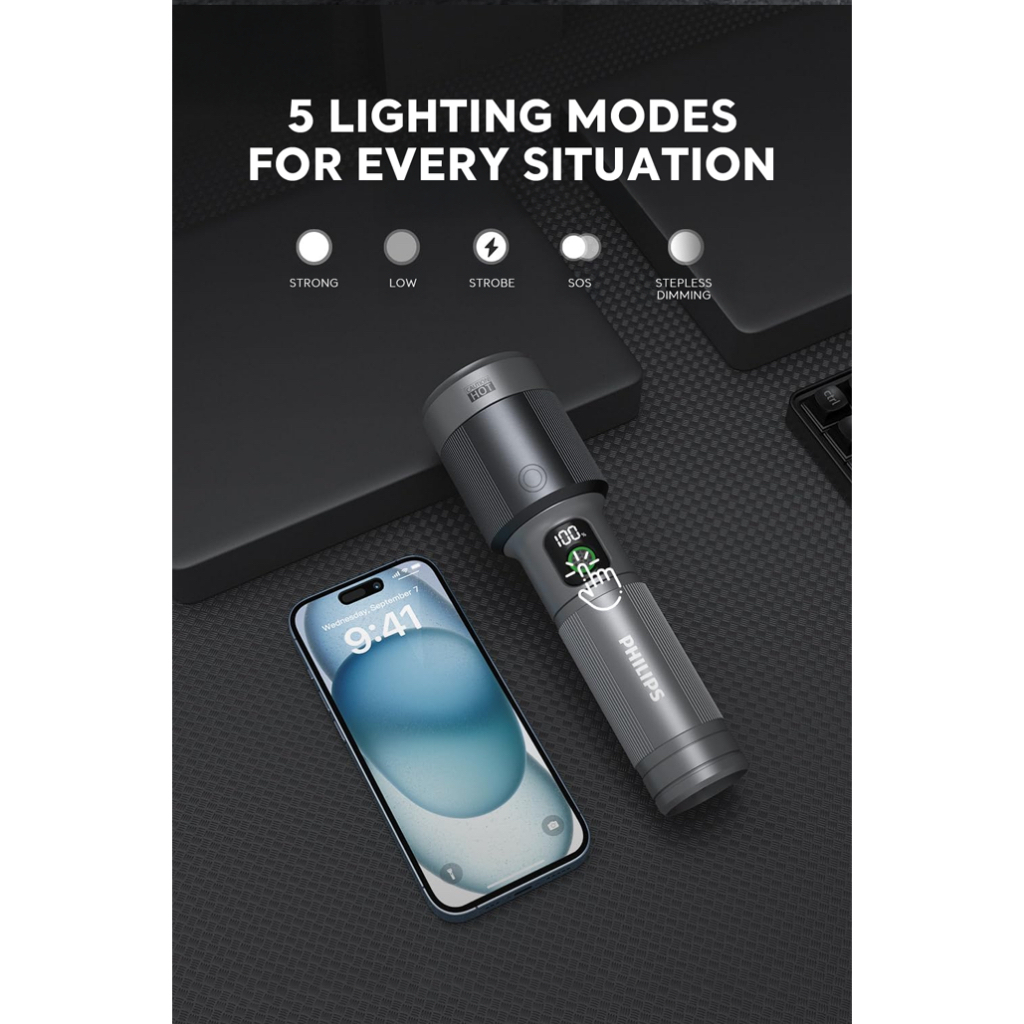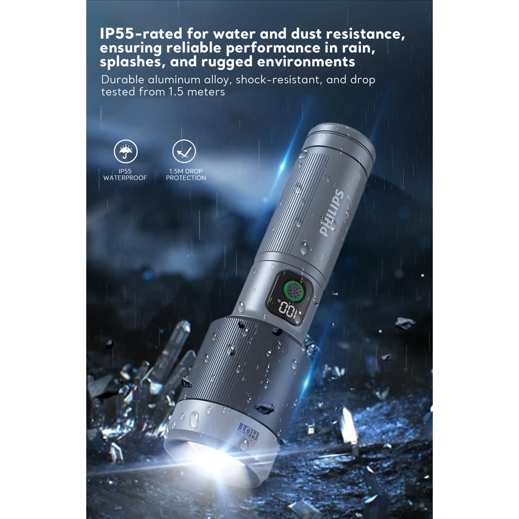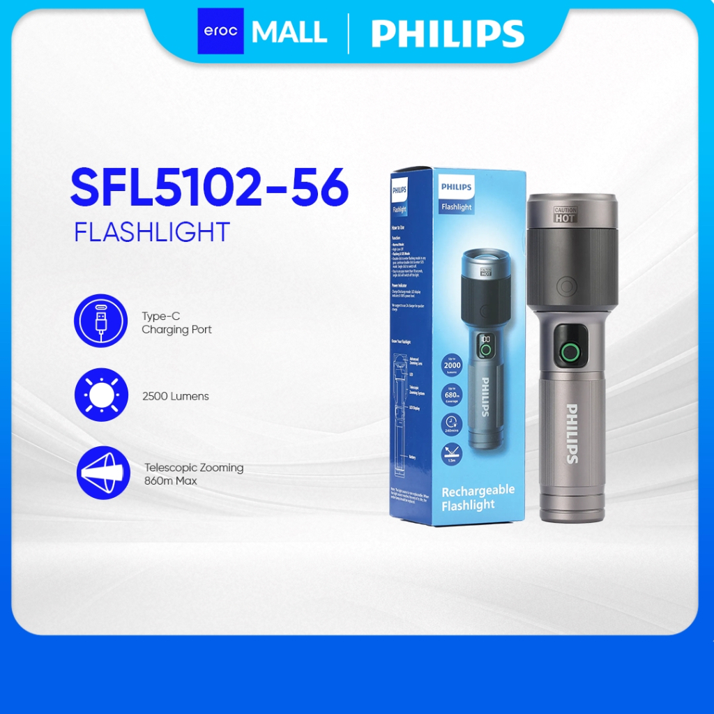 Philips Aircraft Aluminium Alloy Zoom LED Rechargeable Flashlight / Torch SFL5102-56– 2000Lumens