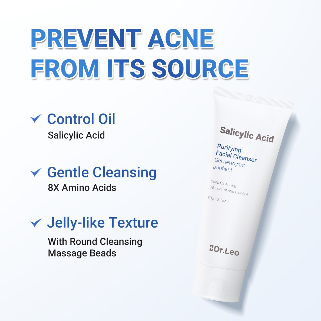 [2PCS] Dr.Leo Facial Wash Acne Deep Cleansing Cleanser Gentle Exfoliating Oil Control Acne Treatment