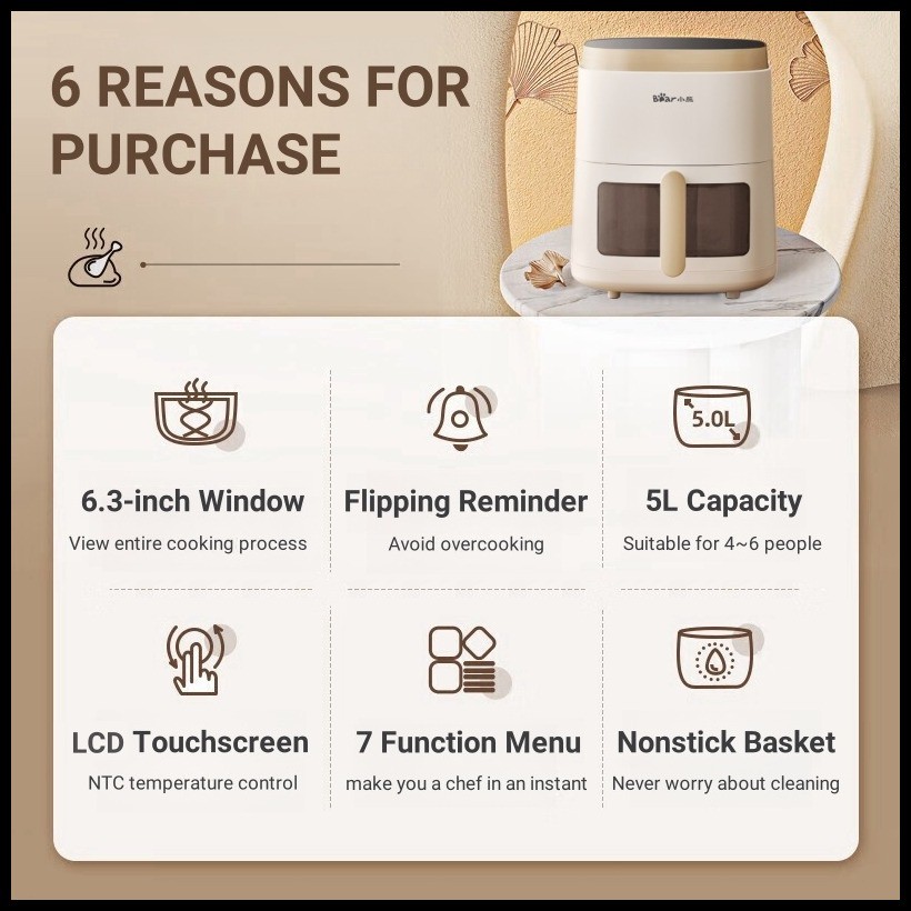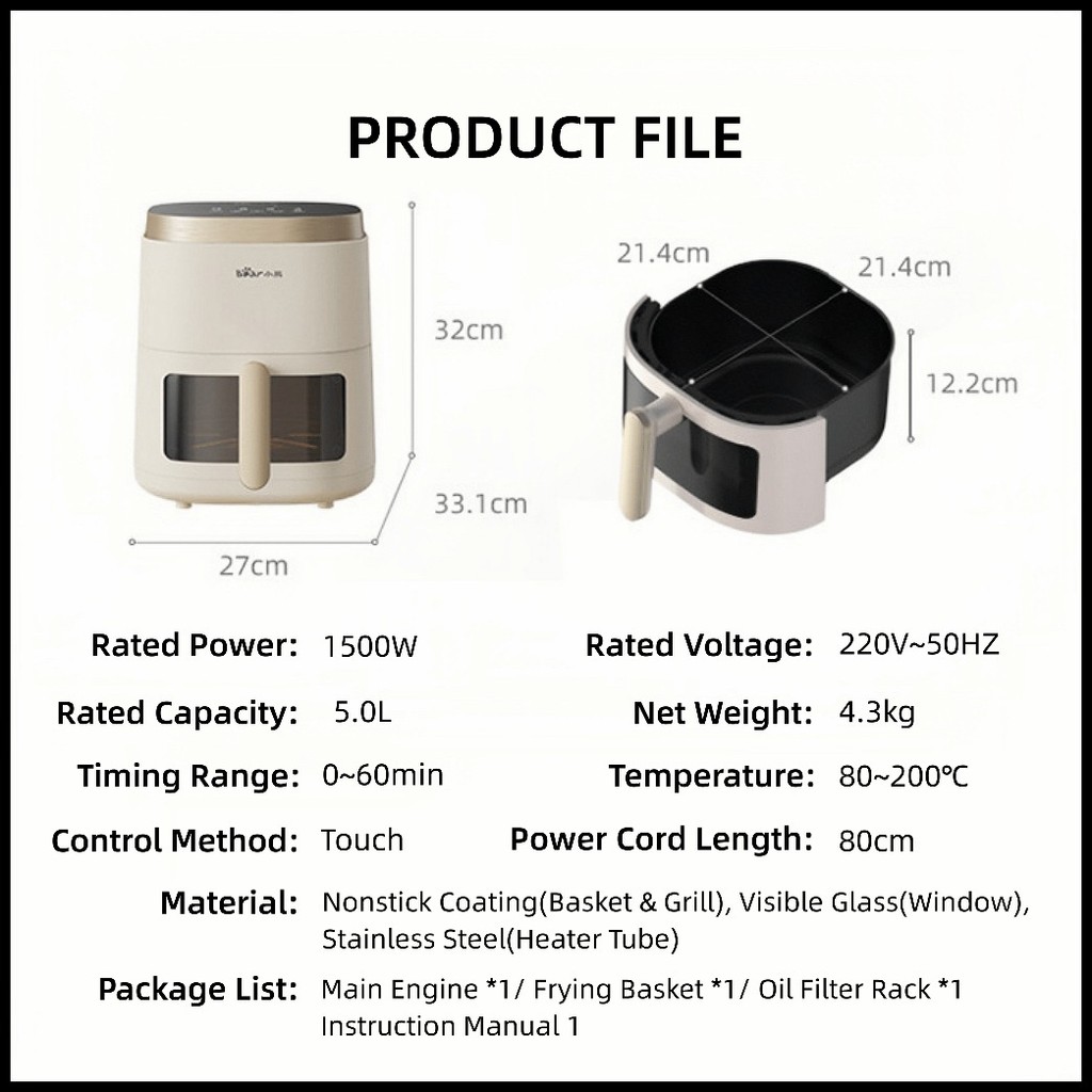 ◇ Bear 5l Air Fryer Oven Inverter Electric Oven For Baking Fully Automatic Multifunctional Non Stic