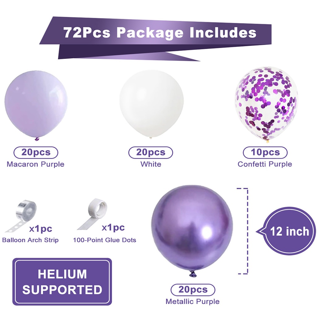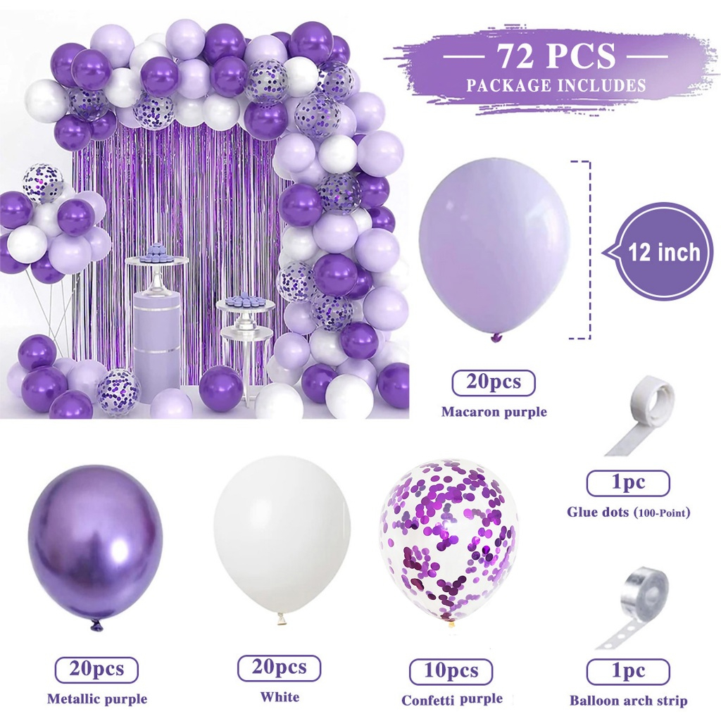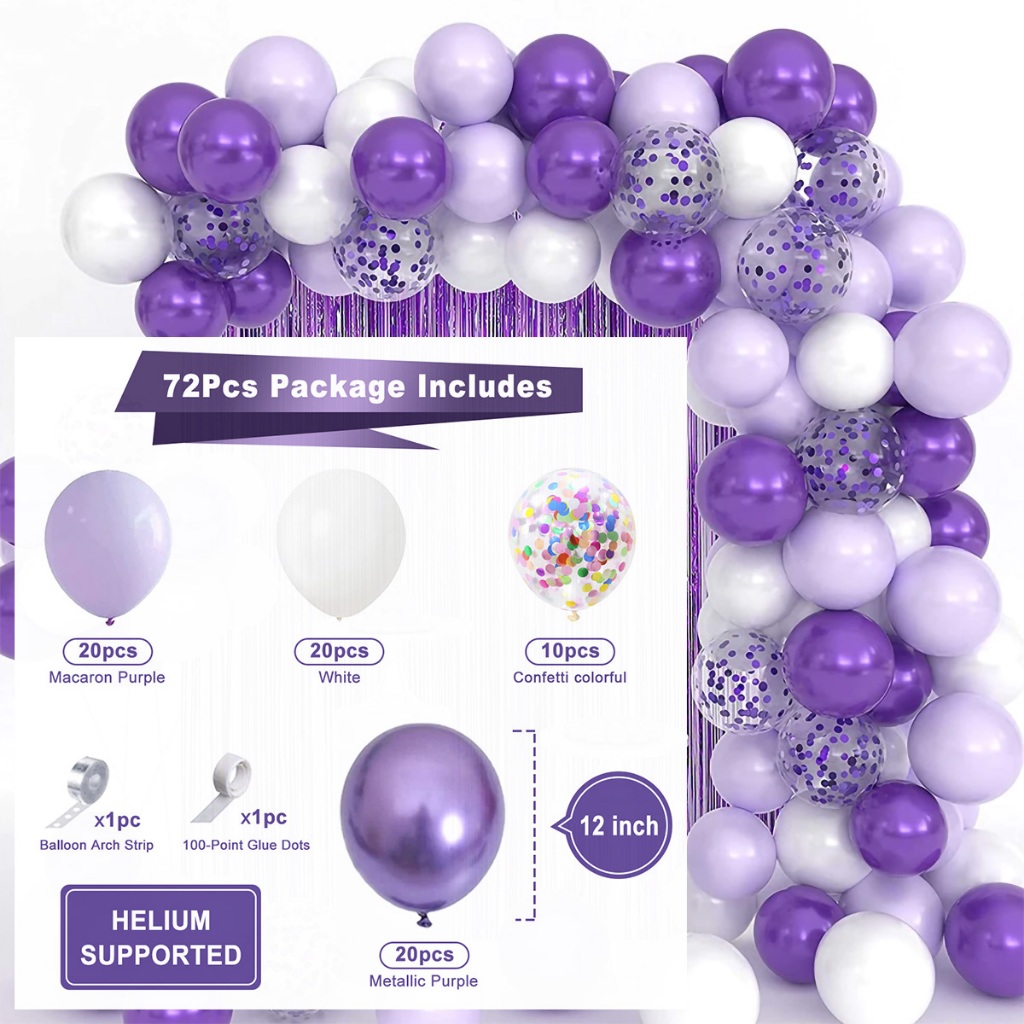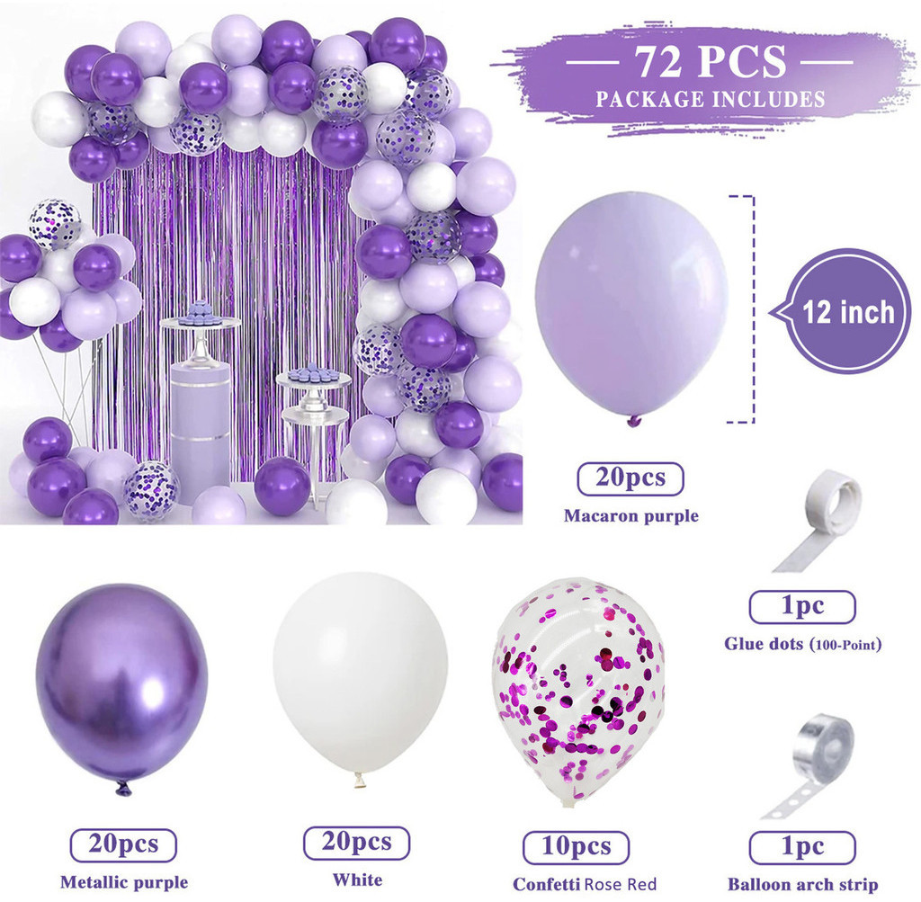 72pcs Macaron Purple Balloons Party Decoration set 12 inch Latex Baloon for Birthday Party Set Decor