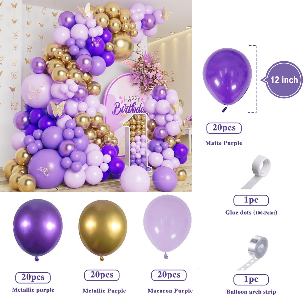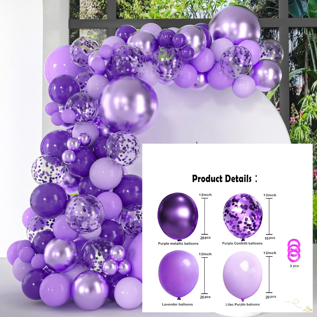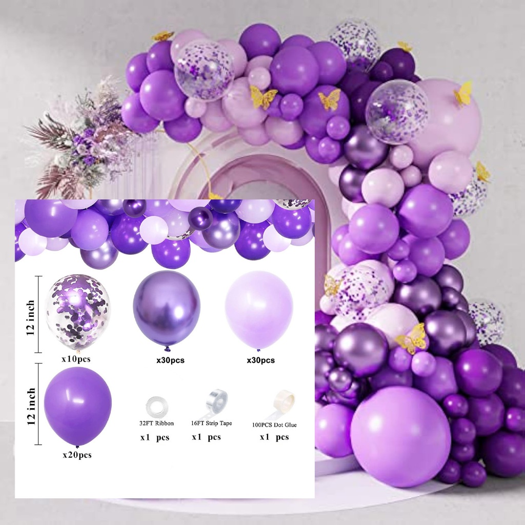 72pcs Macaron Purple Balloons Party Decoration set 12 inch Latex Baloon for Birthday Party Set Decor